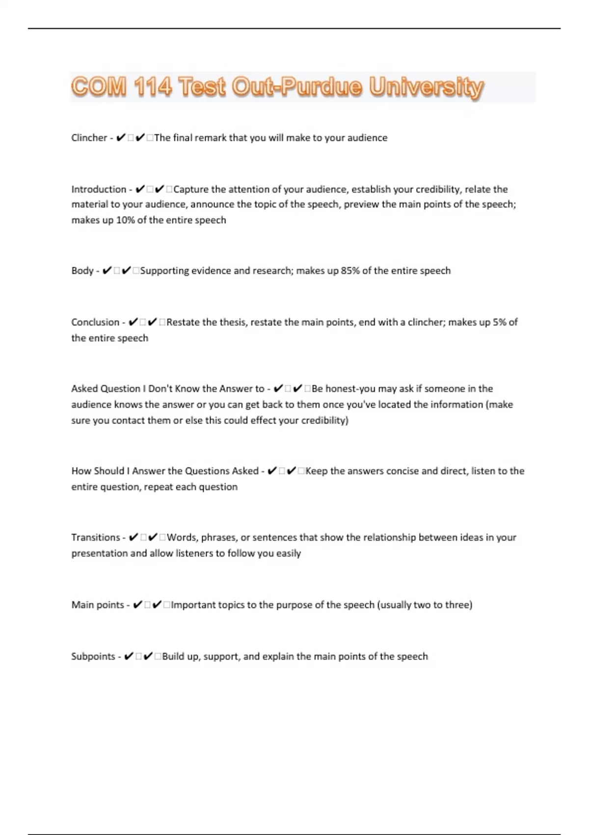 Purdue COM 114 |67 Test Out Study Guide Questions And Answers