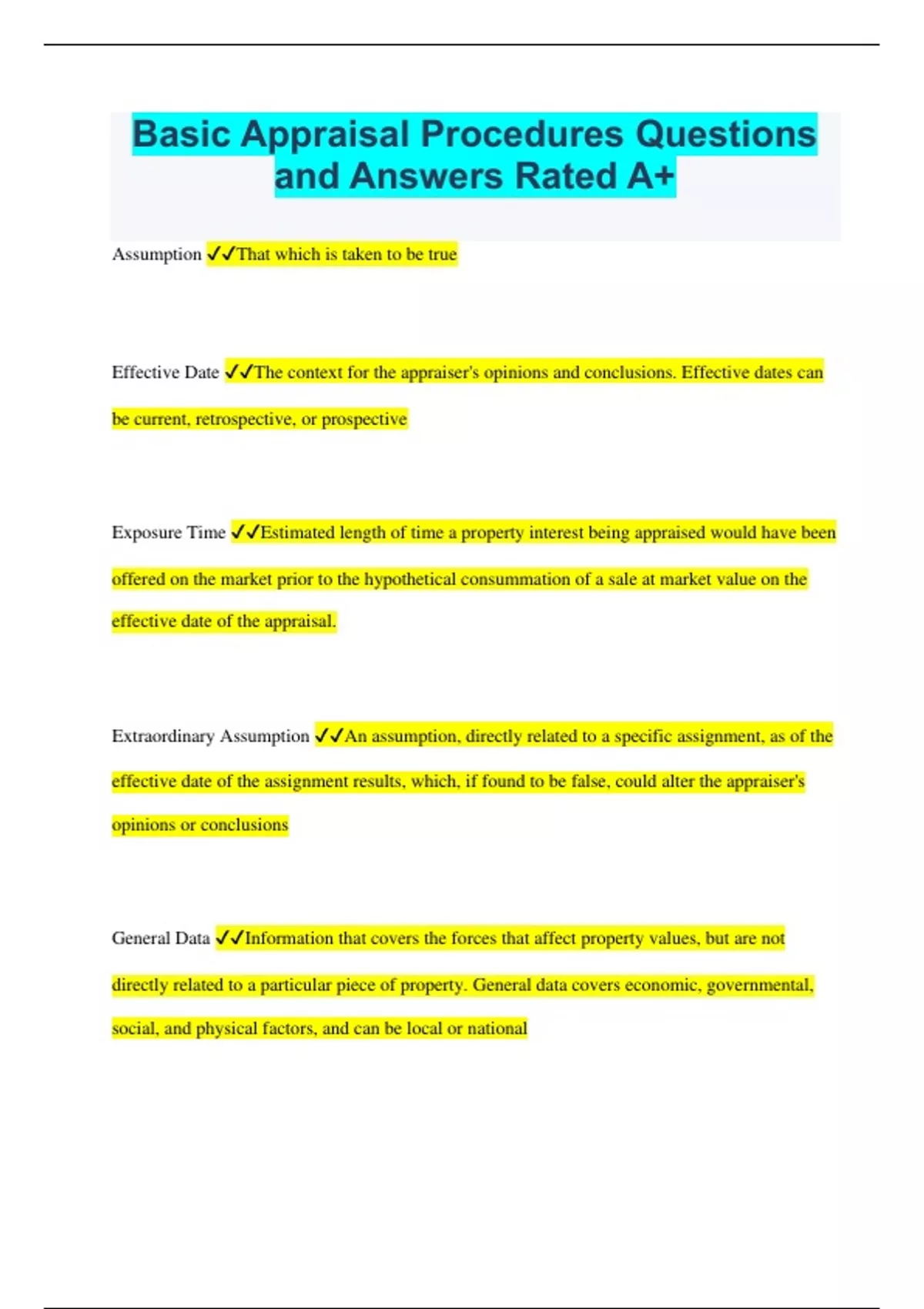 Basic Appraisal Procedures Bundled Exams Questions and Answers Multiple Versions (2023/2024) (Complete and Accurate)