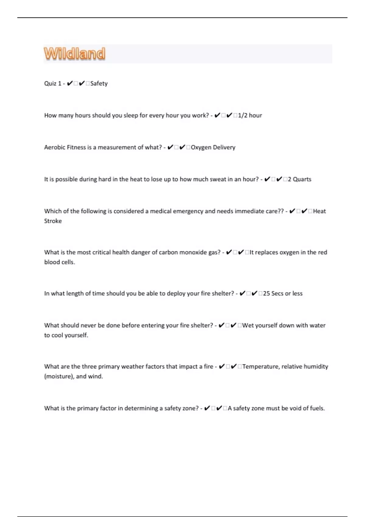 Wildland Final Exam|100 |Review | Questions with 100% Correct Answers | Verified | Latest Update