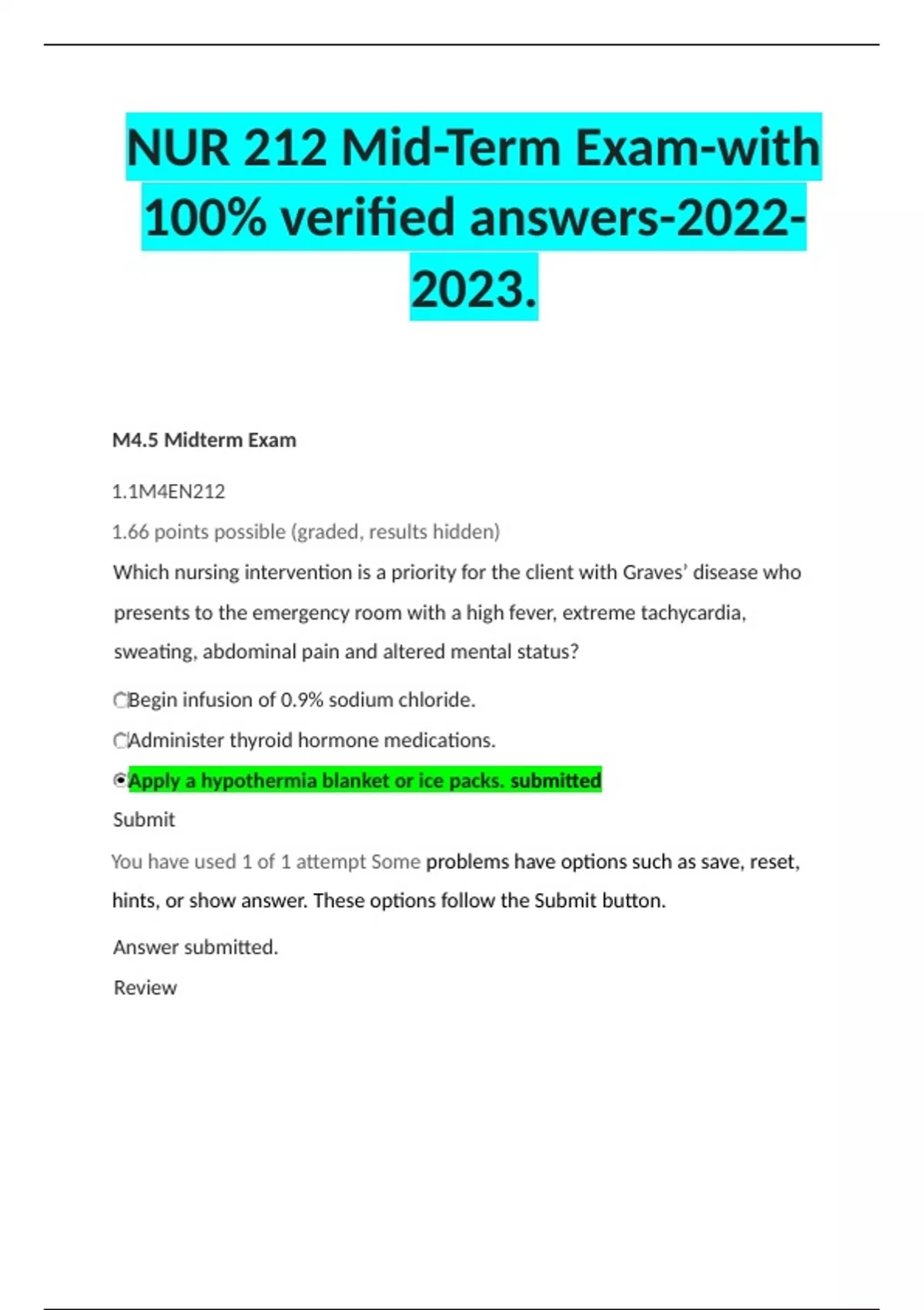 NUR 212 Mid-Term Exam-with 100% verified answers-.