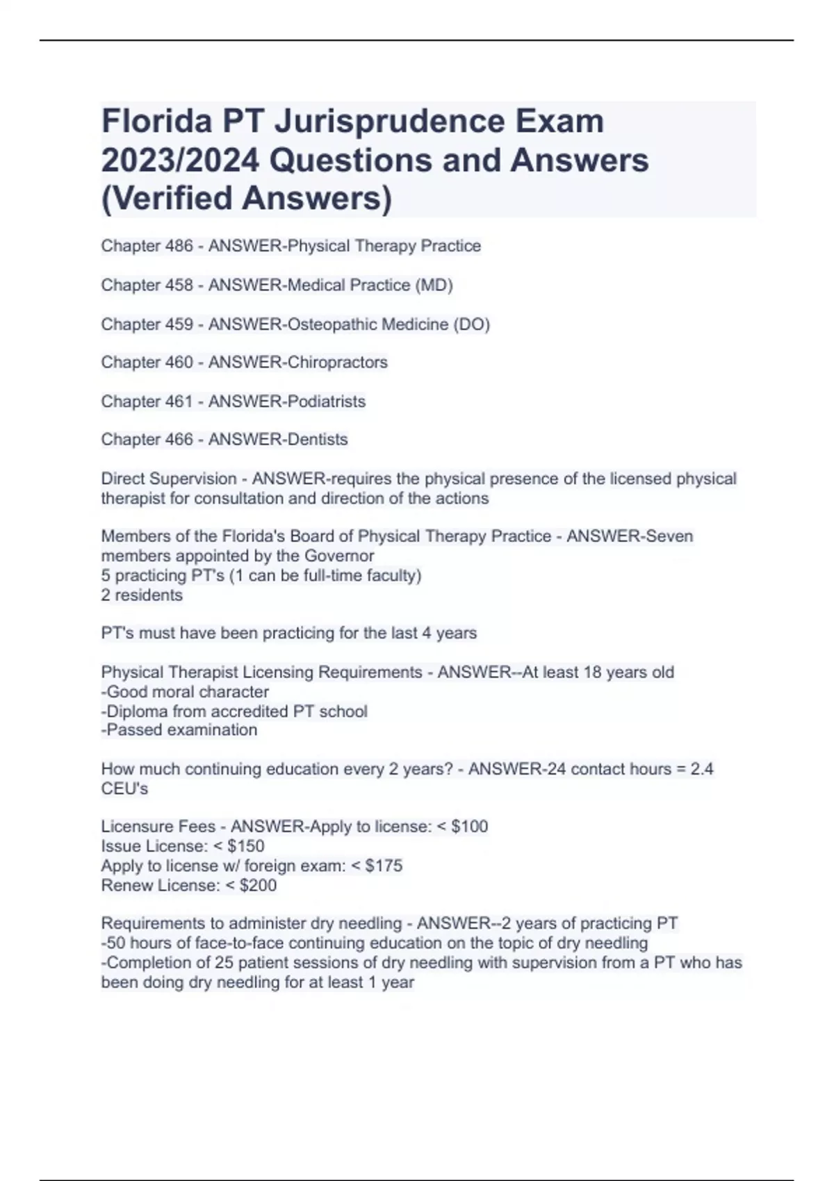 FLORIDA PT JURISPRUDENCE EXAMINATION –PACKAGE DEAL WITH COMPLETE SOLUTIONSFLORIDA PT JURISPRUDENCE EXAMINATION –PACKAGE DEAL WITH COMPLETE SOLUTIONSFLORIDA PT JURISPRUDENCE EXAMINATION –PACKAGE DEAL WITH COMPLETE SOLUTIONSFLORIDA PT JURISPRUDENCE EXAMINATION –PACKAGE DEAL WITH COMPLETE SOLUTIONSFLORIDA PT JURISPRUDENCE EXAMINATION –PACKAGE