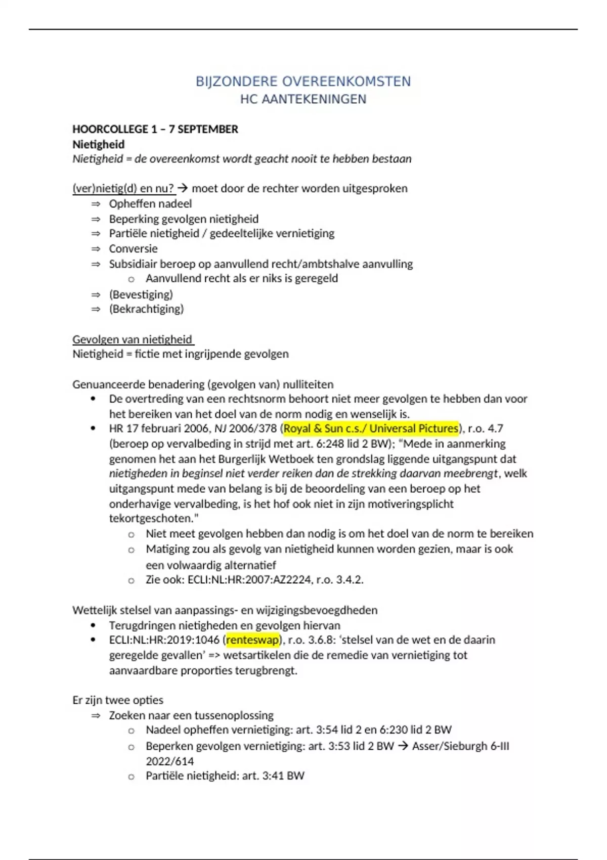 Bijzondere overeenkomsten: alle hoorcollege aantekeningen