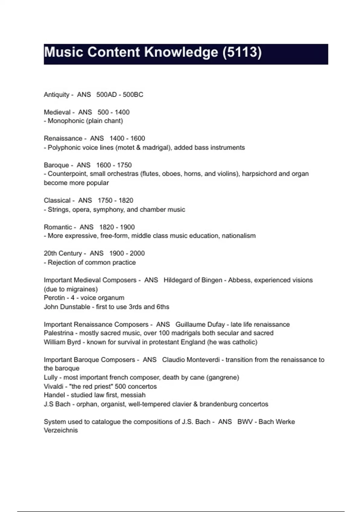 Music Content Knowledge (5113) Praxis II Exam Questions And Answers