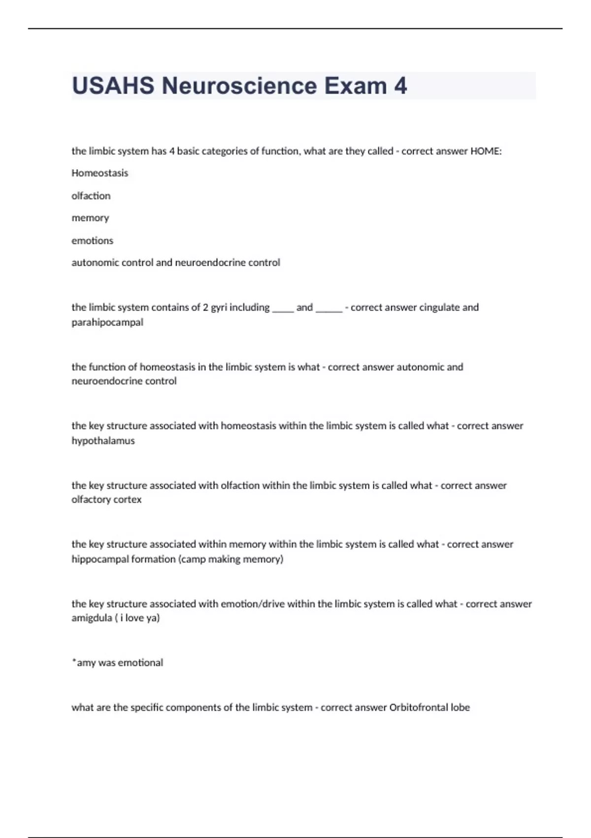 1 Exam (elaborations) USAHS Pharmacology Exam 1 verified to pass 2023/2024 2 Exam (elaborations) USAHS Neuroscience question n answers graded A+ 3 Exam (elaborations) 5125 USAHS Clinical Neuroscience Midterm fully solved rated A+ 4 Exam (elaborations) Neuroscience Midterm with 100% correct answers 2023/2024