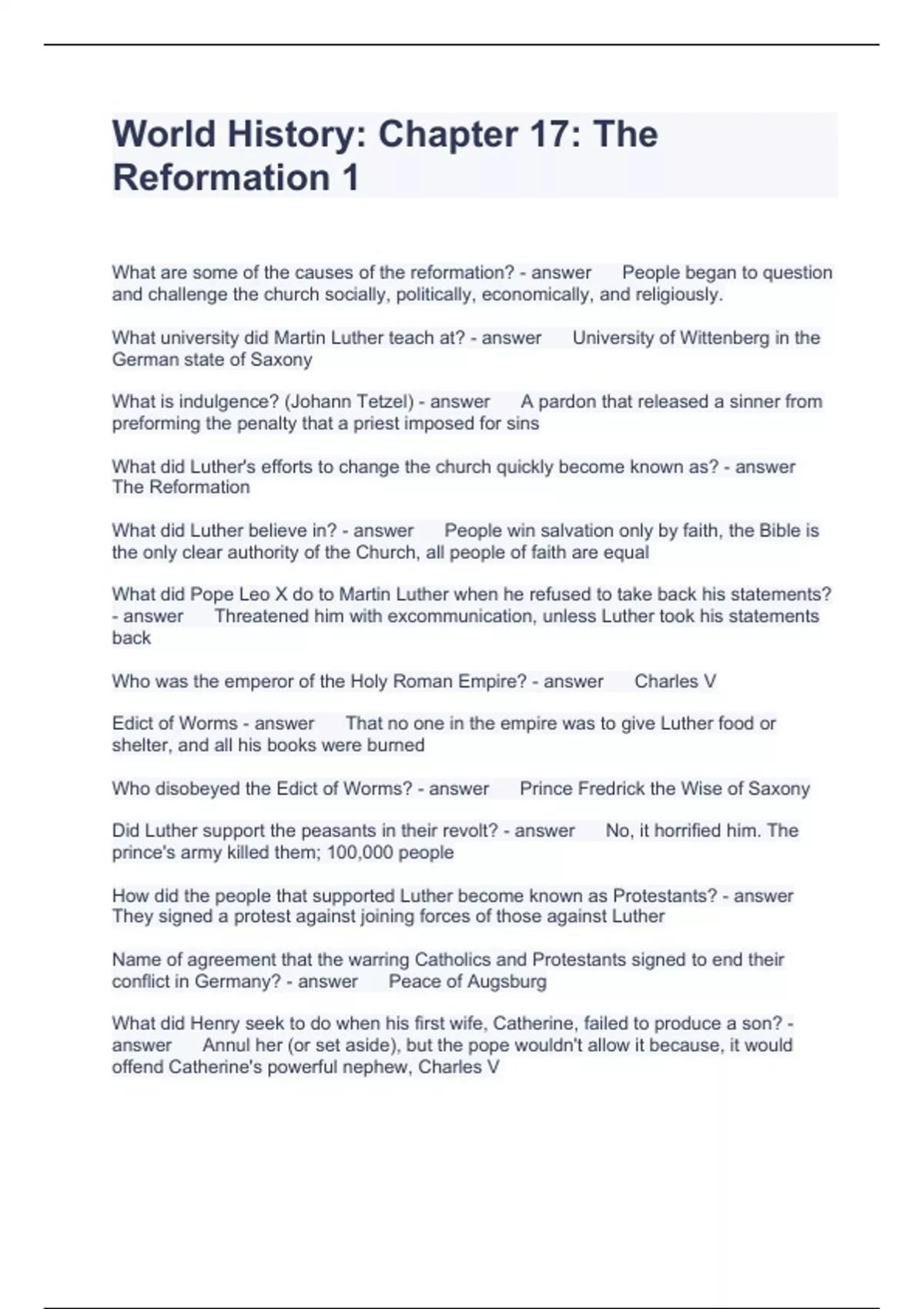 Exam (elaborations) 9th grade Protestant Reformation Questions with Accurate Answers 2024 Exam (elaborations) 9th grade Protestant Reformation Questions with Accurate Answers 2024 Exam (elaborations) Ch.12. The Reformation Questions and Answers 100% Correct 2024 Exam (elaborations) Chapter 12. The Reformation 2 Questions and Answers Fully so