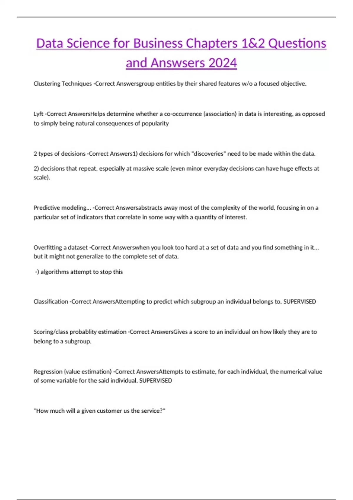 Data Science for Business Chapters 1&2 Questions and Answsers 2024