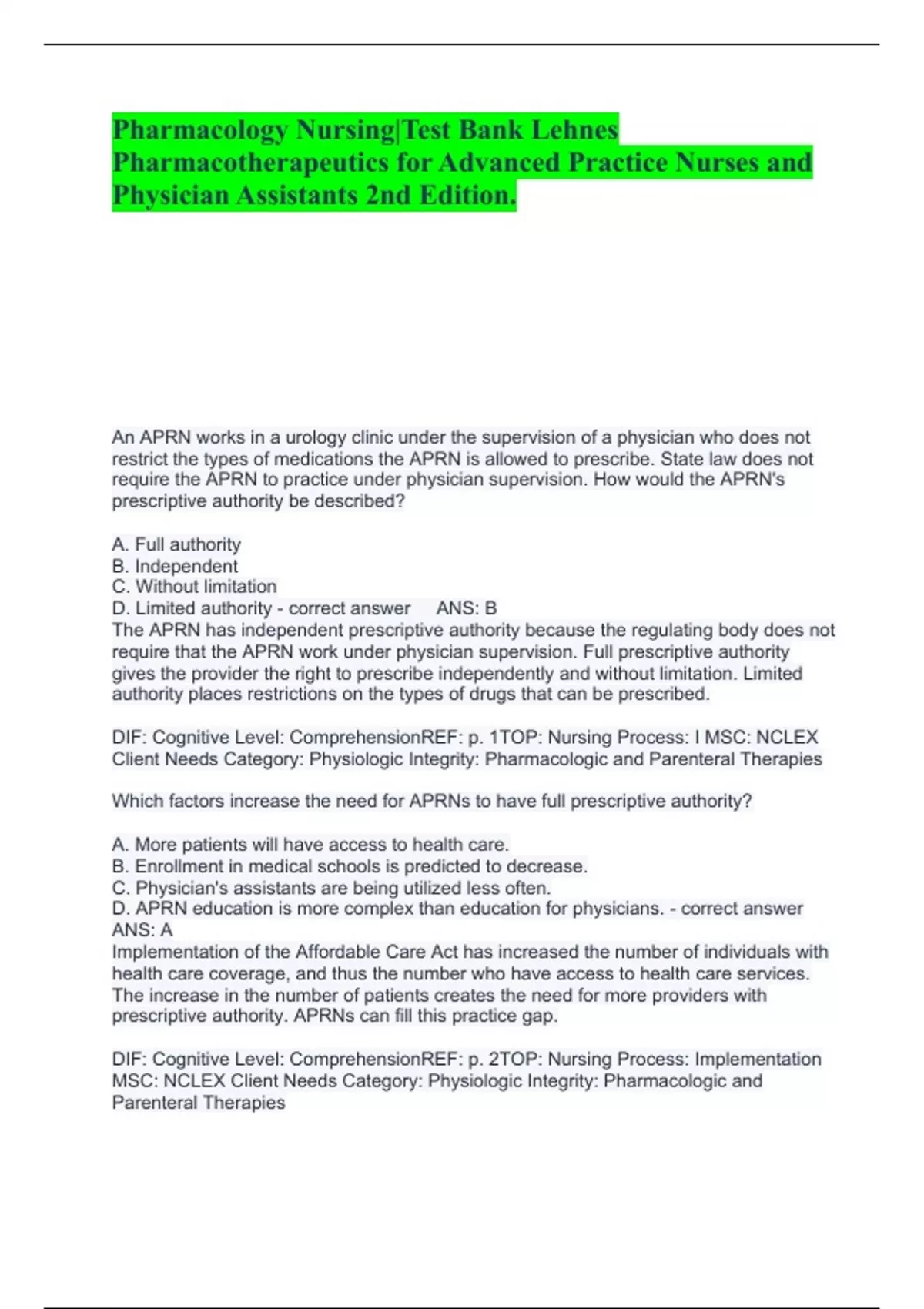 Pharmacotherapeutics for Advanced Practice Nurse Prescribers |Physician Assistants