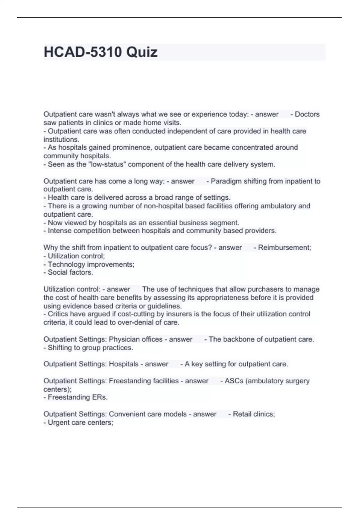 HCAD 375 QUESTIONS AND ANSWERS GRADED A+