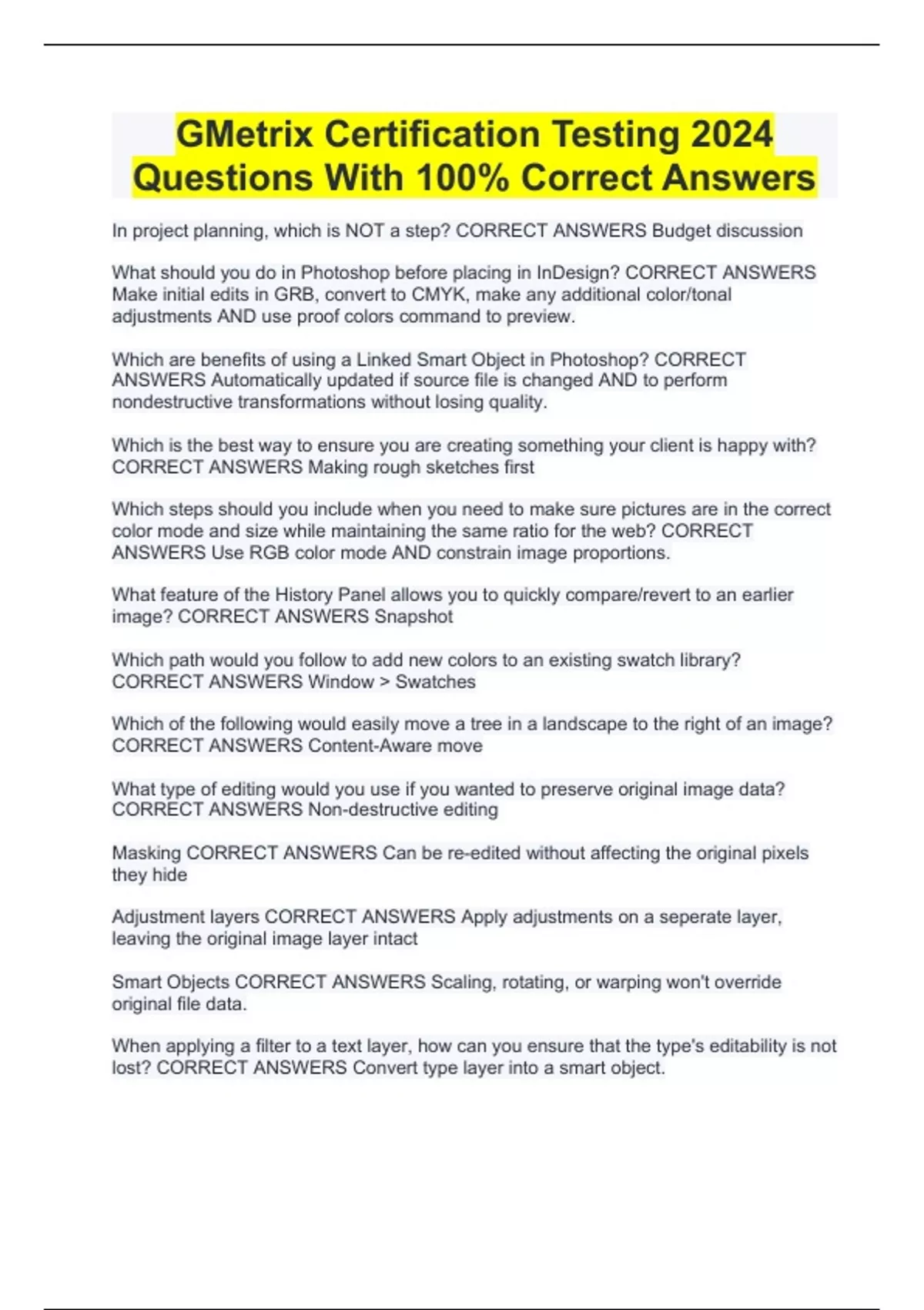 GMetrix Certification Testing 2024 Questions With 100% Correct Answers Gmetrix practice test #1 questions with complete solutions 2024 GMetrix Exam Questions With 100% Verified Answers