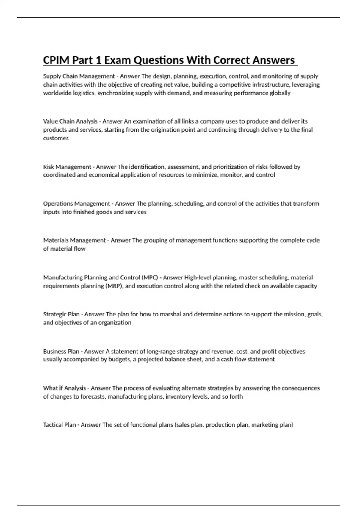 Part 1 Exam, Exam 1, Part 2 Exam, CPIM Exam 1, Part 1 Section 2, Practice Questions, Key Terms, Part 1 Post Test, MODULE , Practice Exam, Module 2, Part 1 Formulas, Formulas Exam, Practice Exam, Part 1 Test, CPIM Practice Exam, Final Formulas, Study Guide, MODULE 3, Part 1 Terms, Exam 1,Session 8, CPI Exam, Part 2 Module 2, Final Formulas
