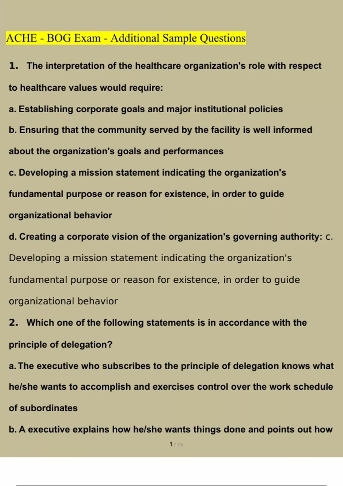 ACHE FACHE BOG EXAM BUNDLE for ACHE FACHE Exam ACHE FACHE BOG Week 1 - 6 | Questions with 100% Correct Answers | Verified | Updated 2024