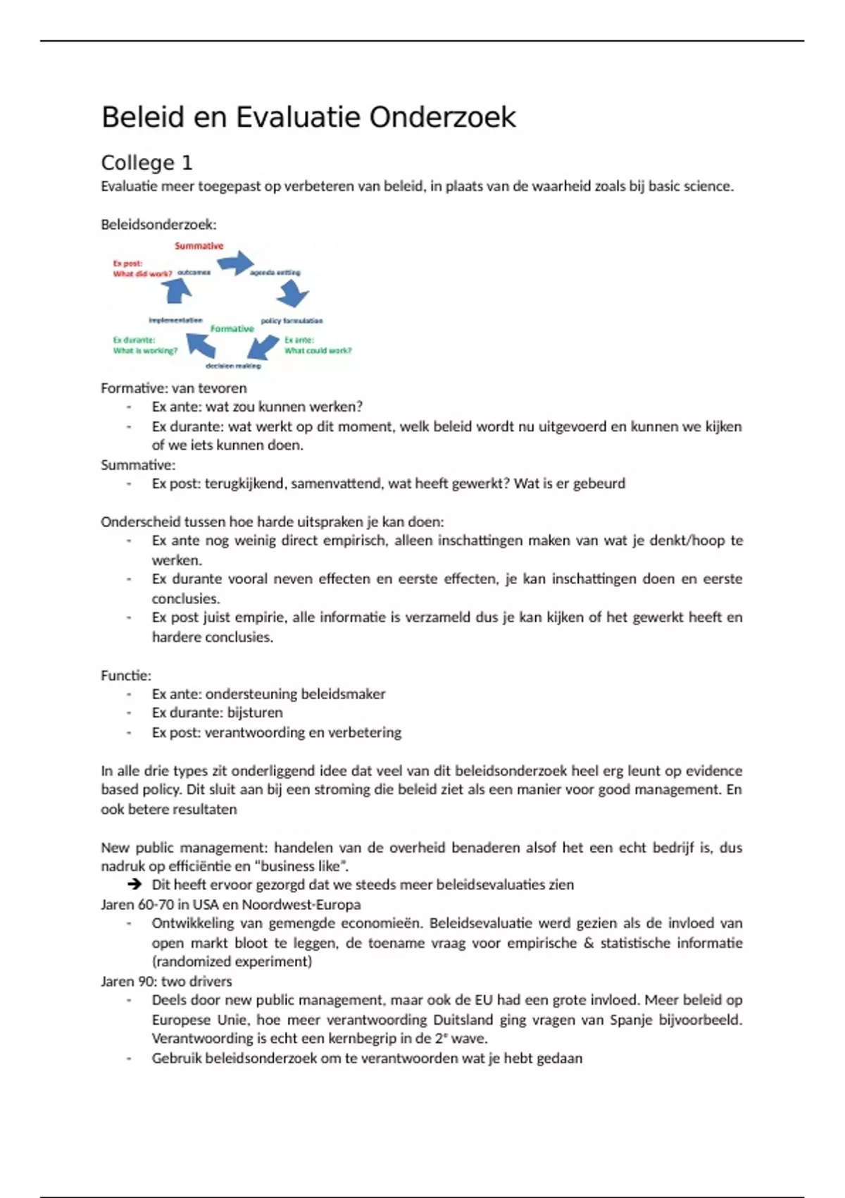 Een voordeelbundel van ALLE stof: - aantekeningen van de colleges van Beleids- en evaluatieonderzoek - een samenvatting van alle (verplichte) literatuur van het jaar 2023/2024. Ik heb een 7.4 gehaald, dus hopelijk hebben jullie er wat aan :)