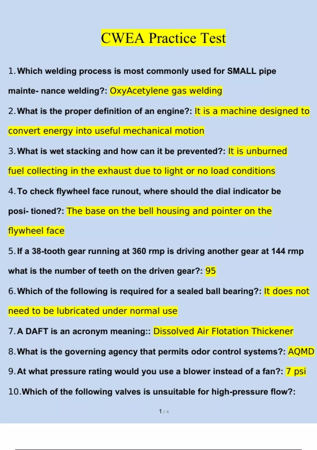 CWEA Practice Test BUNDLED CWEA Environmental Compliance Inspector Grade 1 | Questions with 100% Correct Answers | Verified | Updated 2024