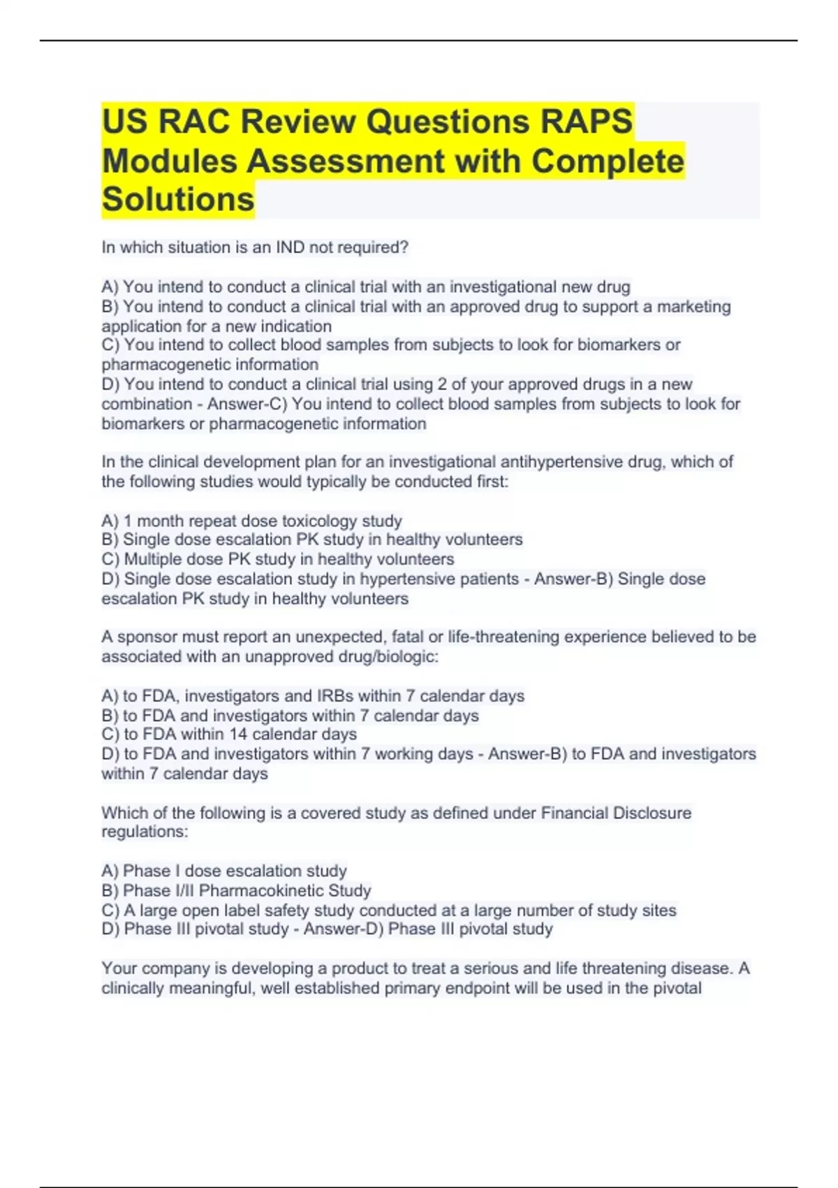 US RAC Review Questions RAPS Modules Assessment with Complete Solutions.