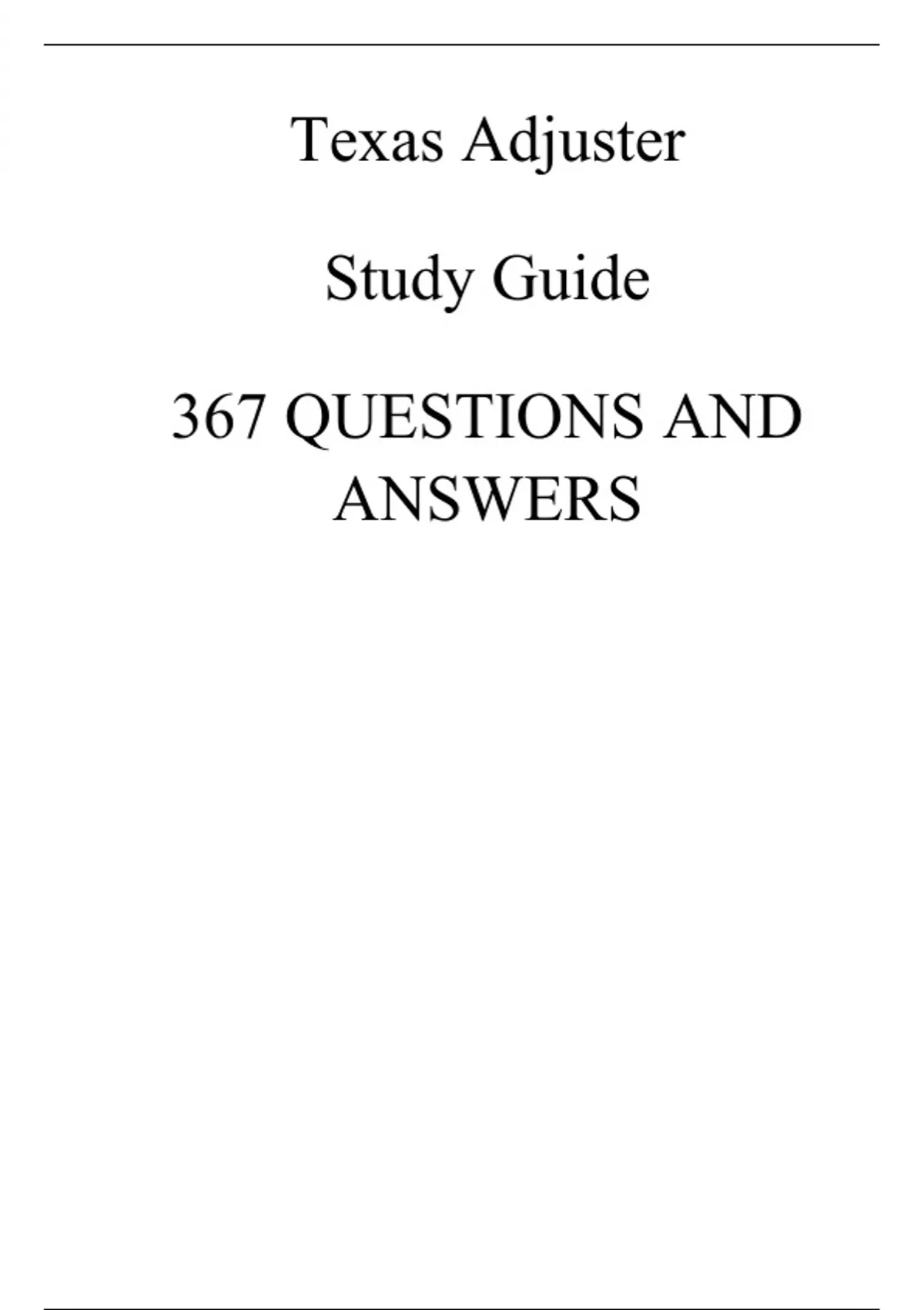 Texas Adjuster Study Guide 367 QUESTIONS AND ANSWERS
