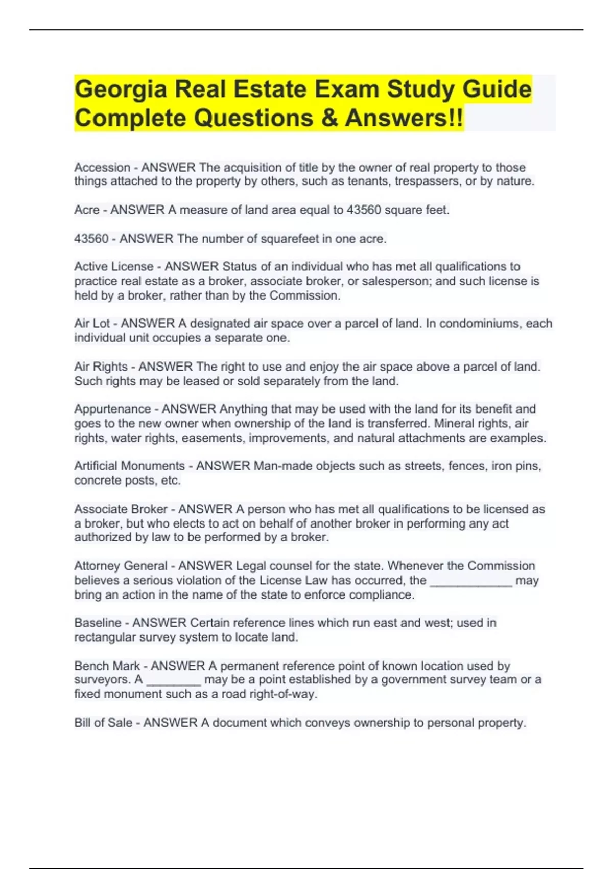 Georgia Real Estate Exam Study Guide Complete Questions & Answers!!VGeorgia Real Estate Exam Study Guide Complete Questions & Answers!!Georgia Real Estate Exam Study Guide Complete Questions & Answers!!Georgia Real Estate Exam Study Guide Complete Questions & Answers!!Georgia Real Estate Exam Study Guide Complete Questions & Answers!!
