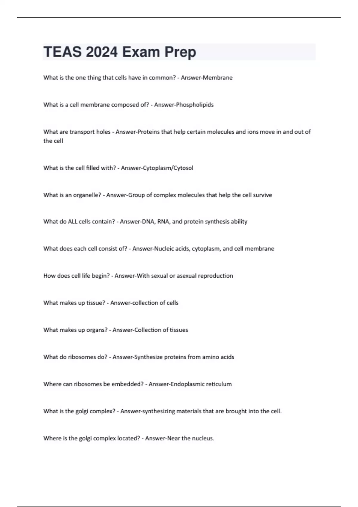 TEAS Science Exam Questions & Answers Correctly Answered.