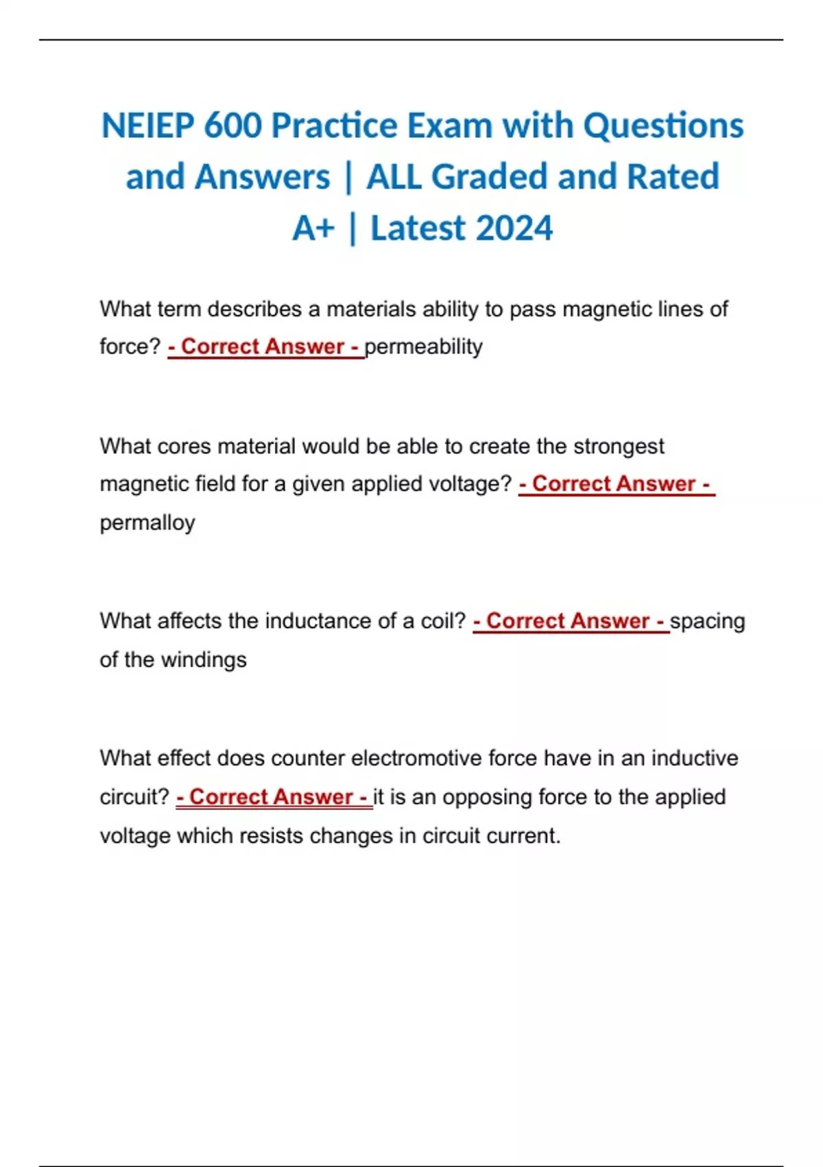 NEIEP 600 Practice Exam with Questions and Answers | ALL Graded and Rated A+ | Latest 2024