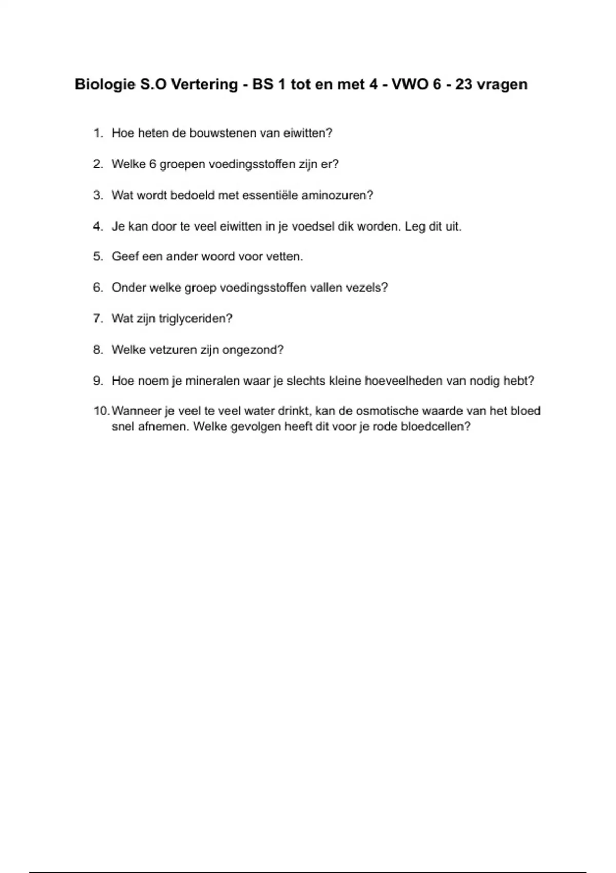 Biologie S.O vertering - VWO 6