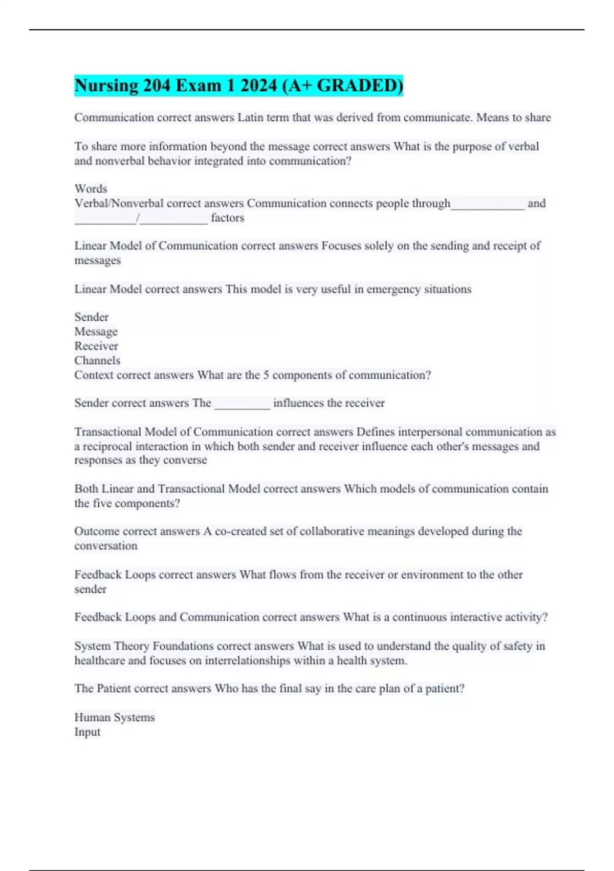 Nurs 204 Communication and Professional Relationships (Well-enlightened) Nursing 204 Exam 2 notes (Well-enlightened) NURS 204 exam 1 Theorists and Theories of Nursing Nursing 204 Exam 1: UL-Lafayette (With complete solution)