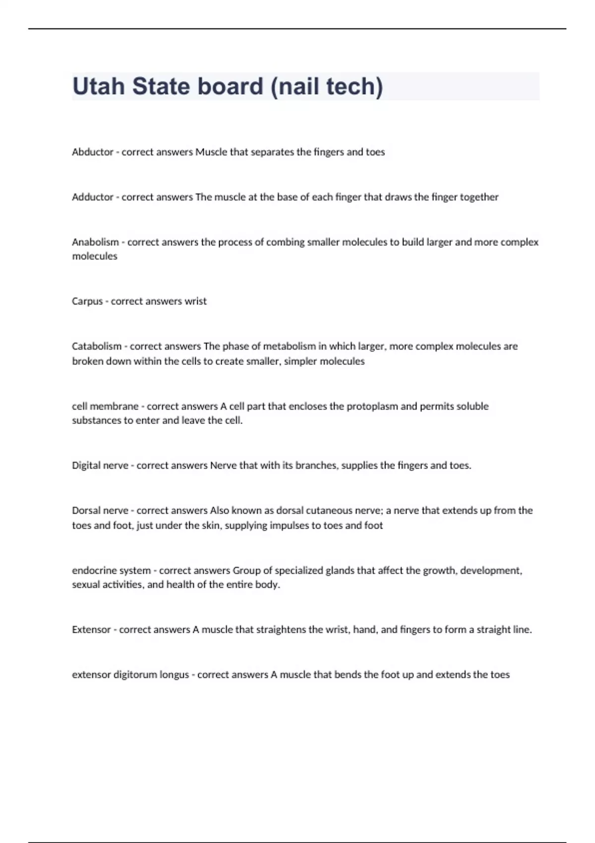 Arizona State Board Nail Technology Exam Question and answers correctly solved 2023/2024 Exam (elaborations) Ga State board Nails Question and answers already passed 2023/2024 Exam (elaborations) Laws and Rules Nail Technology Questions with complete solution 2023/2024 Exam (elaborations) Manicure State Board Exam Review Question and answers