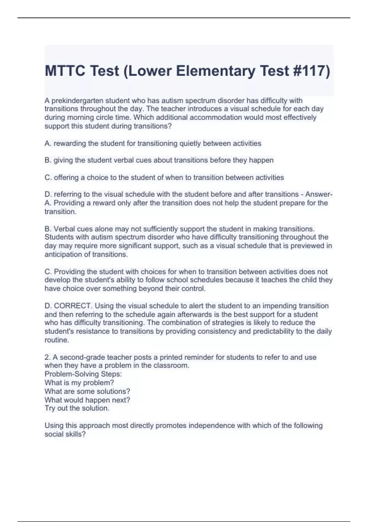 MTTC Test (Lower Elementary Test #117) Questions and Answers