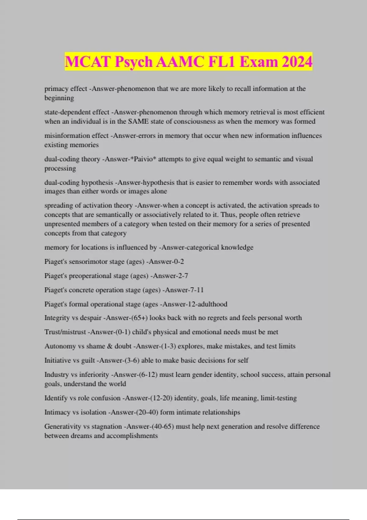 MCAT AAMC FL 1EXAM QUESTIONS AND ANSWERS