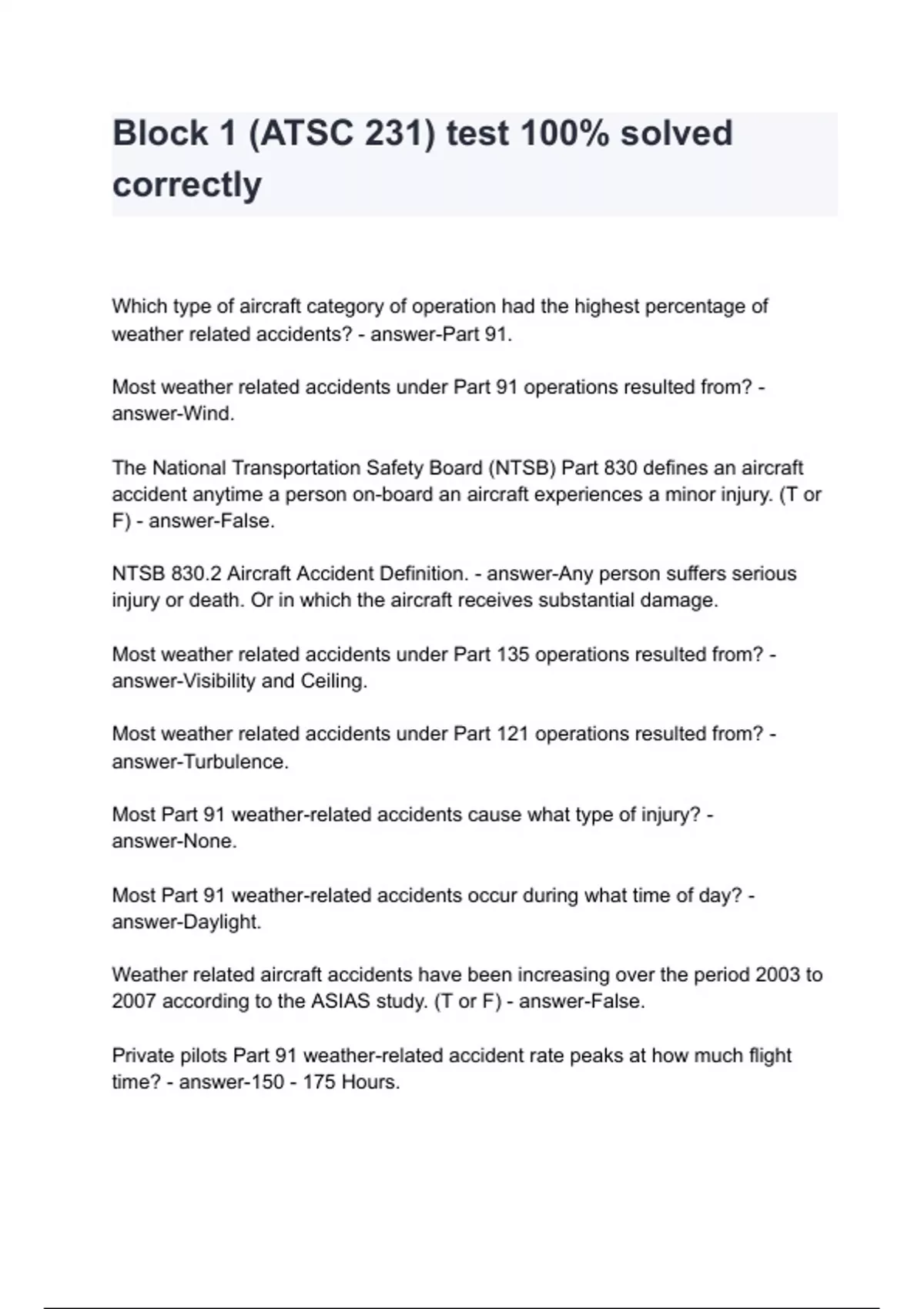 ATSC 113 Fly C questions and answers / complete solution