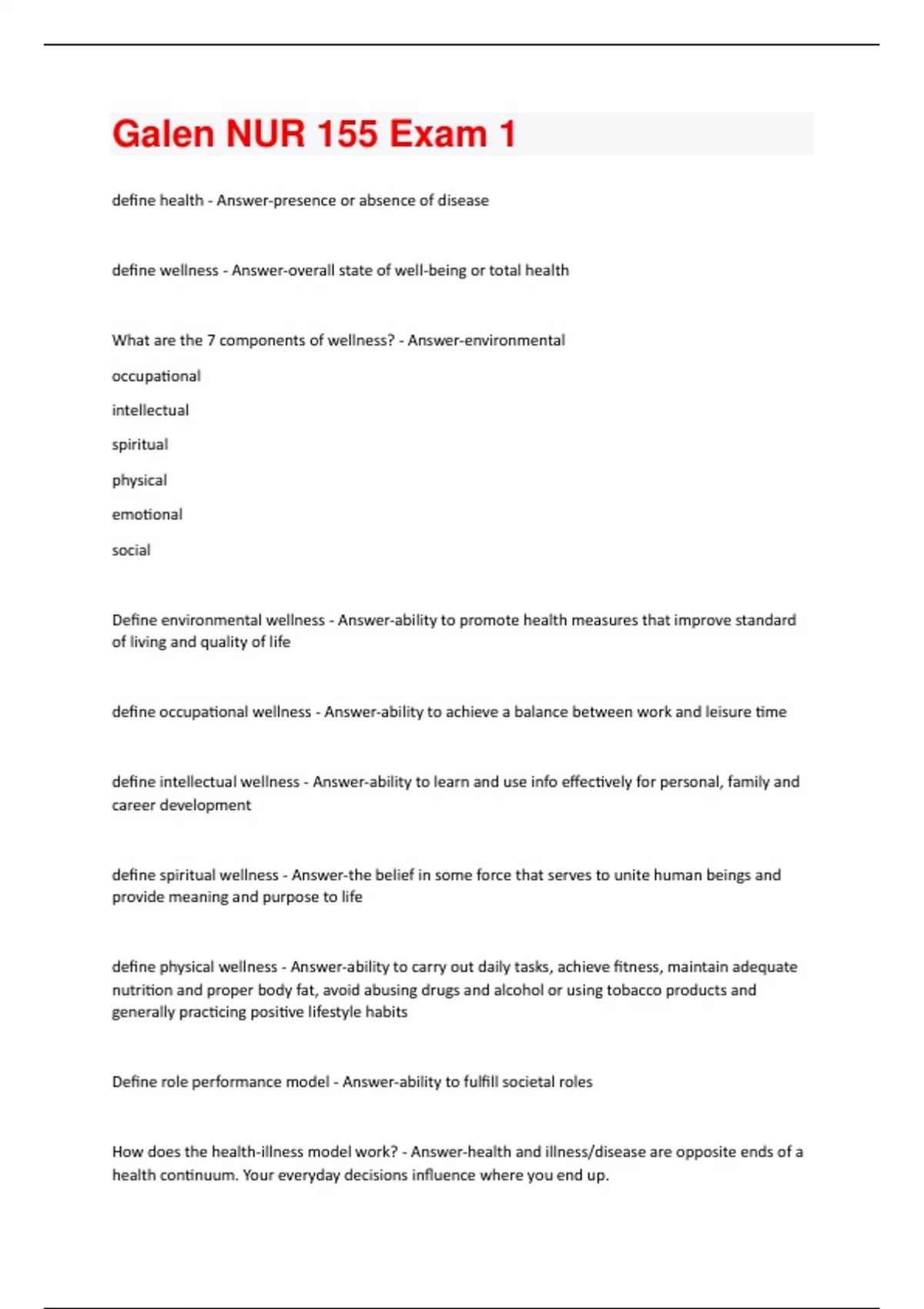 Galen NUR 210 Exam 1 Questions And Answers Rated A+ New Update Assured Satisfaction