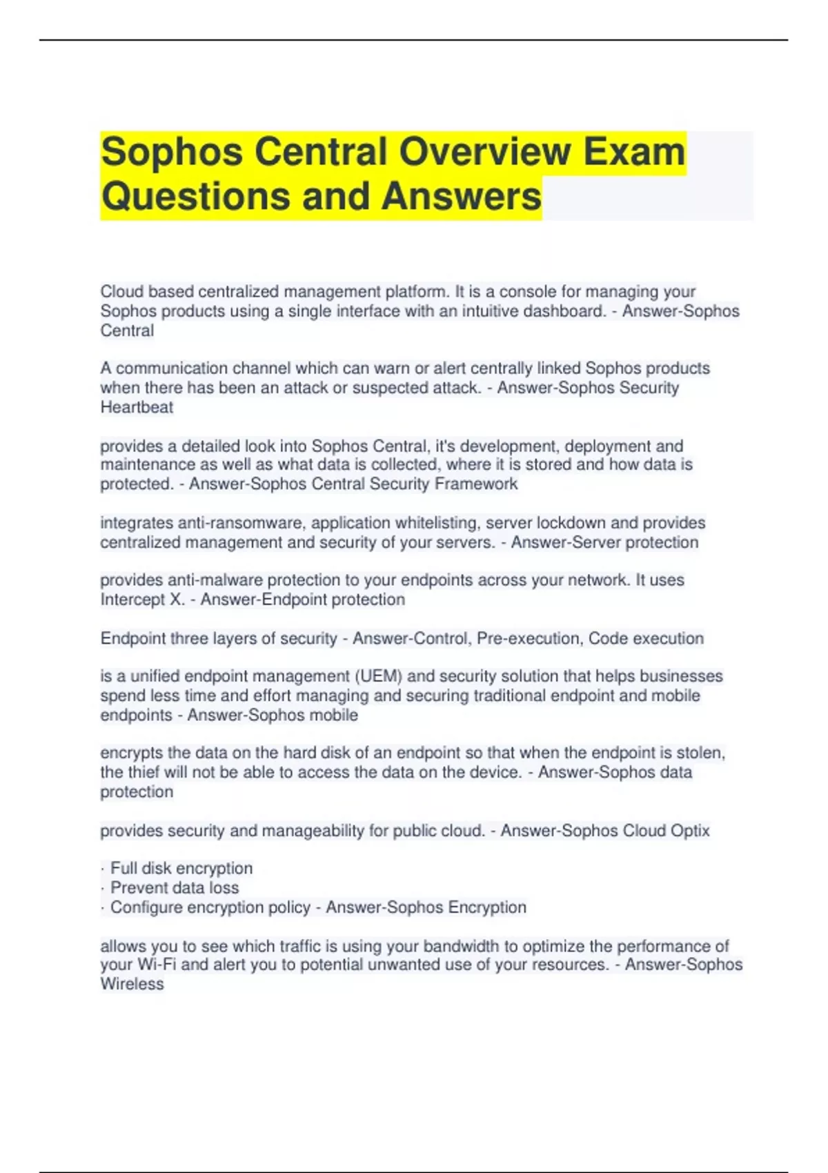 Sophos Threat saurus Exam Questions and Answers All Correct 2 Exam (elaborations) Sophos Overview Reviewer with Complete Solutions 3 Exam (elaborations) Sophos Firewall v19.5 Exam Questions with Correct Answers 4 Exam (elaborations) Sophos Firewall Exam Questions and Answers All Correct 5 Exam (elaborations) Sophos Exam Questions with Correct A