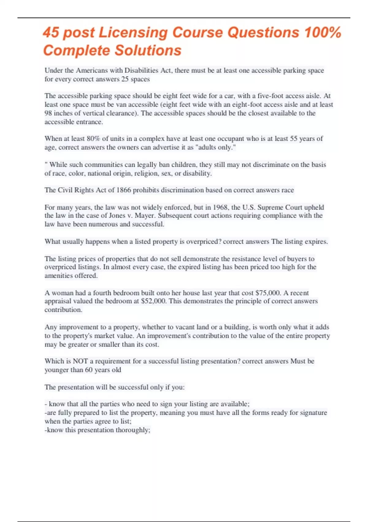 Real Estate 45 Hour Post Licensing(BUNDLE) Questions and Answers