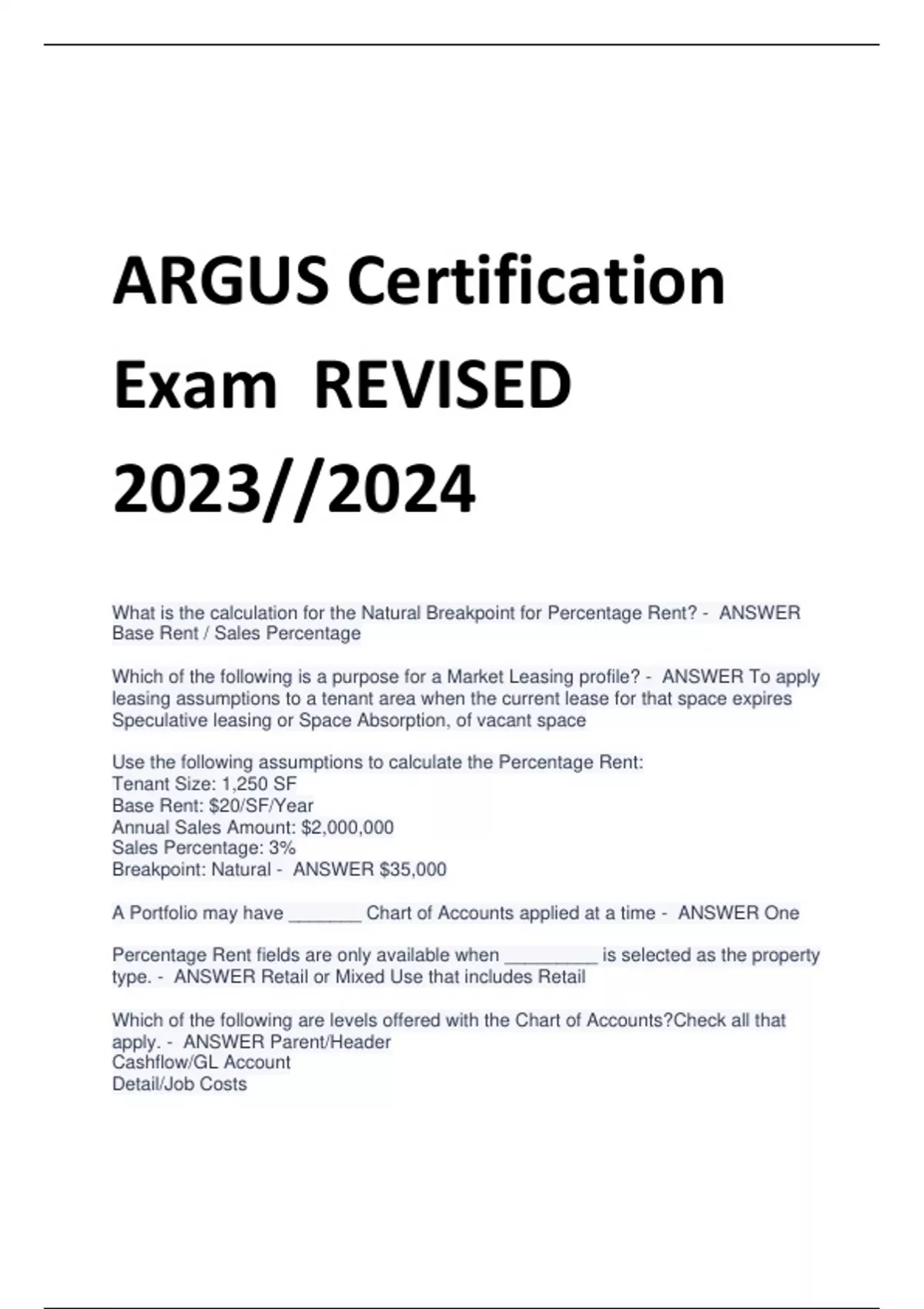 BUNDLE FOR Argus Certification Practice Exam CORRECT SOLUTIONS 2023//2024