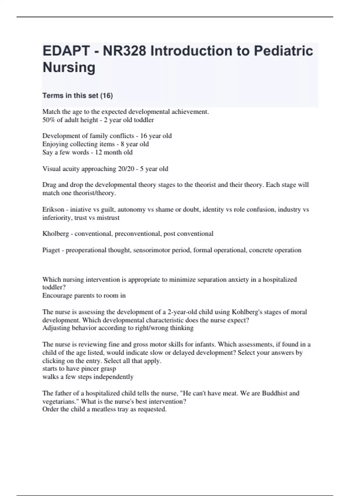 EDAPT - NR328 Introduction to Pediatric Nursing