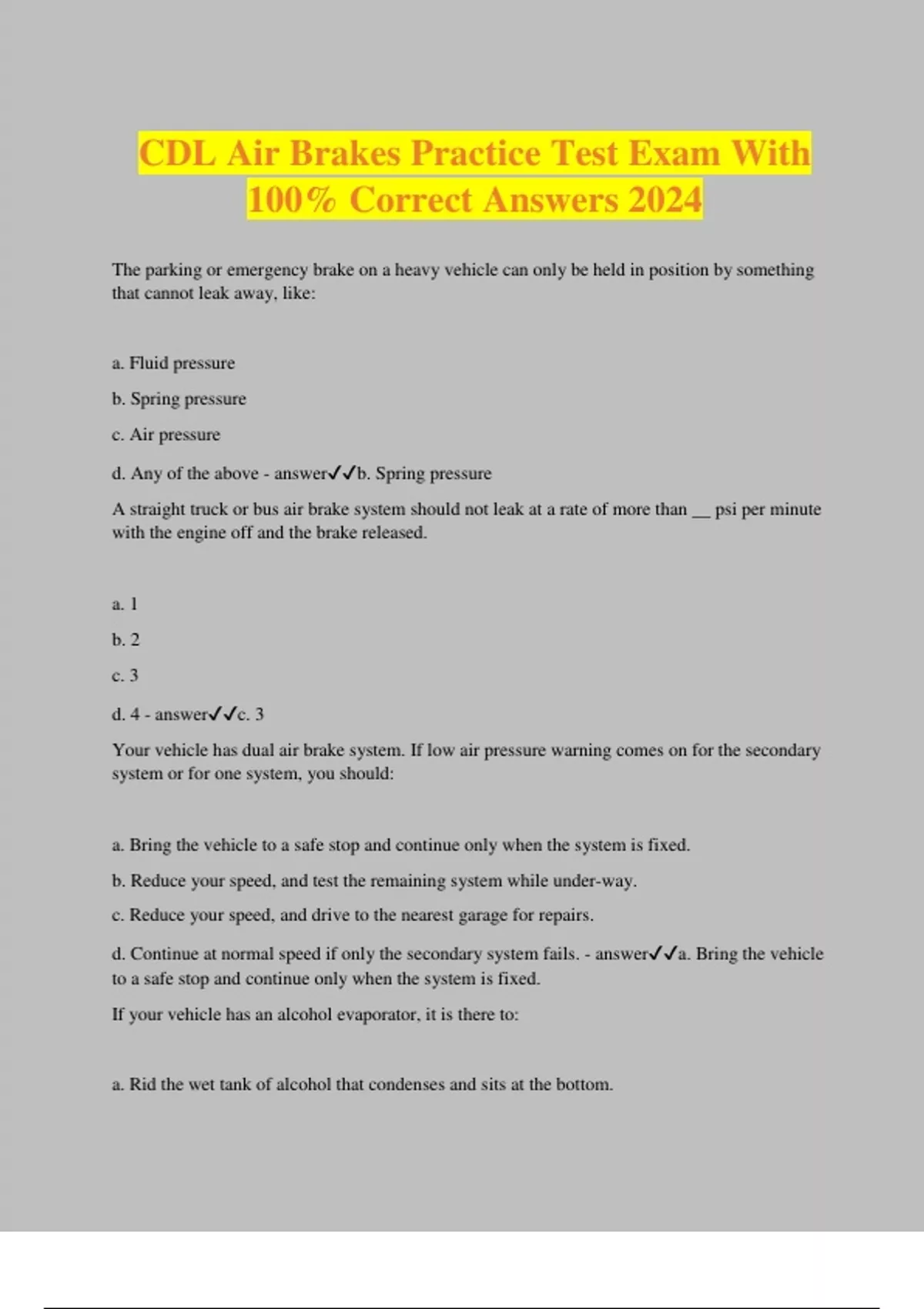 CDL Air Brakes Practice Test Exam With 100% Correct Answers 2024