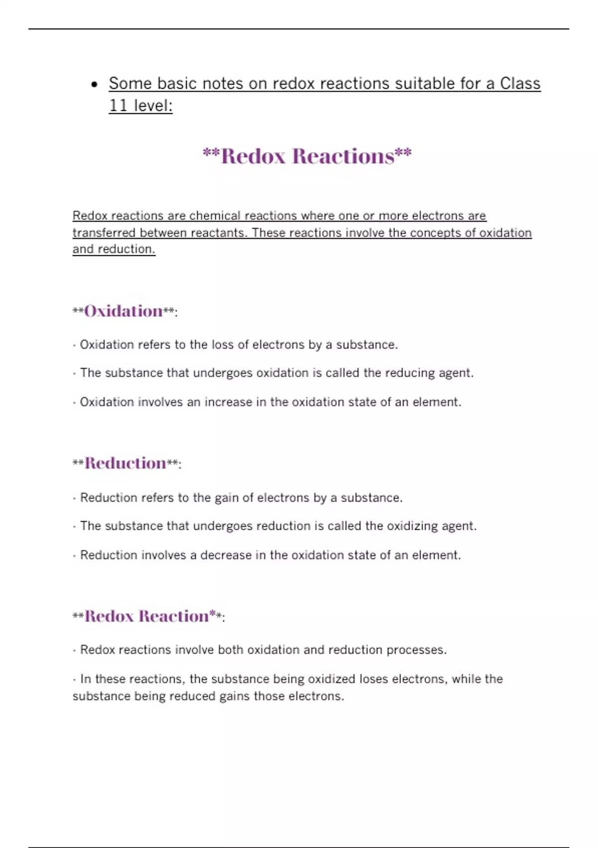 Class notes Chemistry