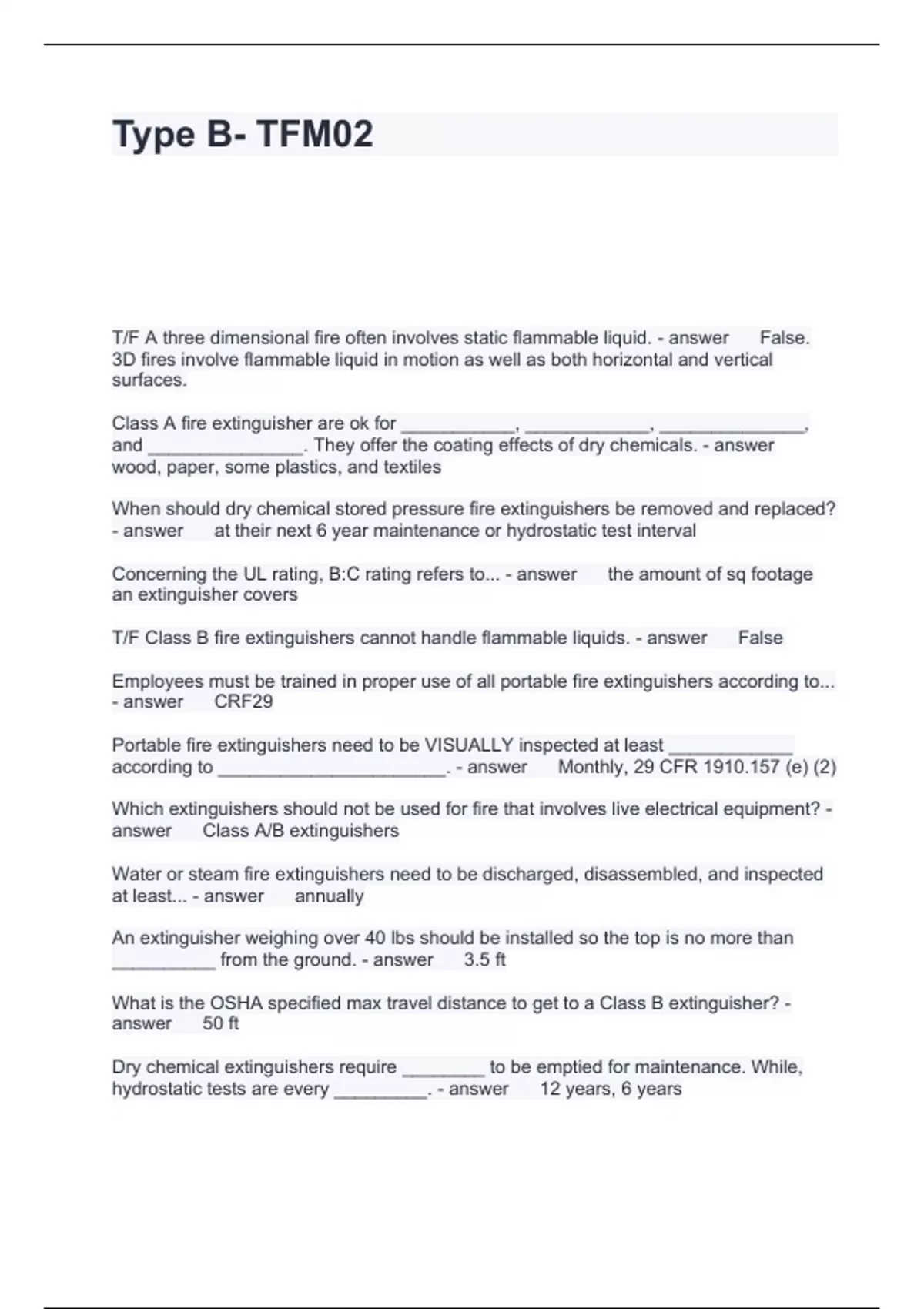 TFM Fire Extinguisher Rule Questions with solutions 2024
