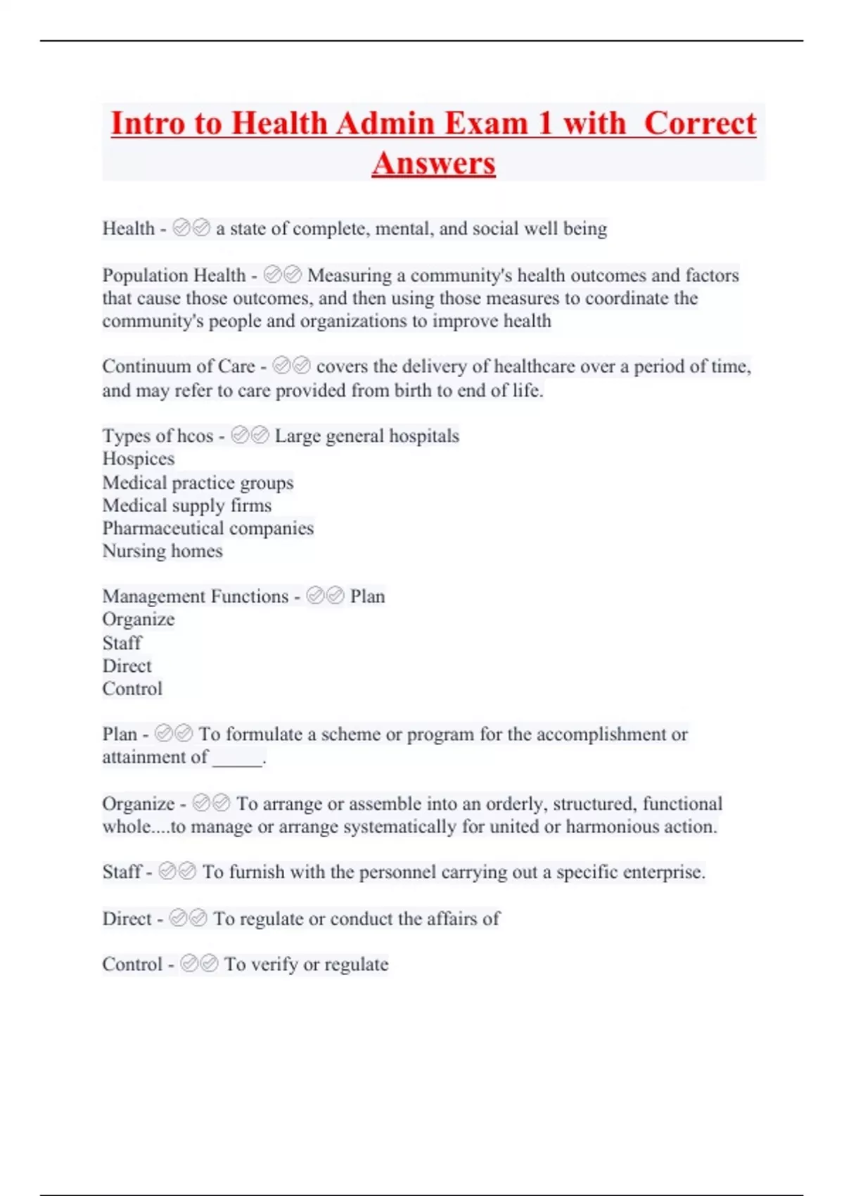 Health Administration Vocabulary Test with Solutions| Introduction to Health Administration (Final Exam) Questions and Solutions 2024| Introduction to Health Administration - Exam 1 with Solutions| Health Administration Midterm Exam with Solutions| Health Administration Exam 1 Questions and Verified Answers| Intro to Health Admin Exam 1