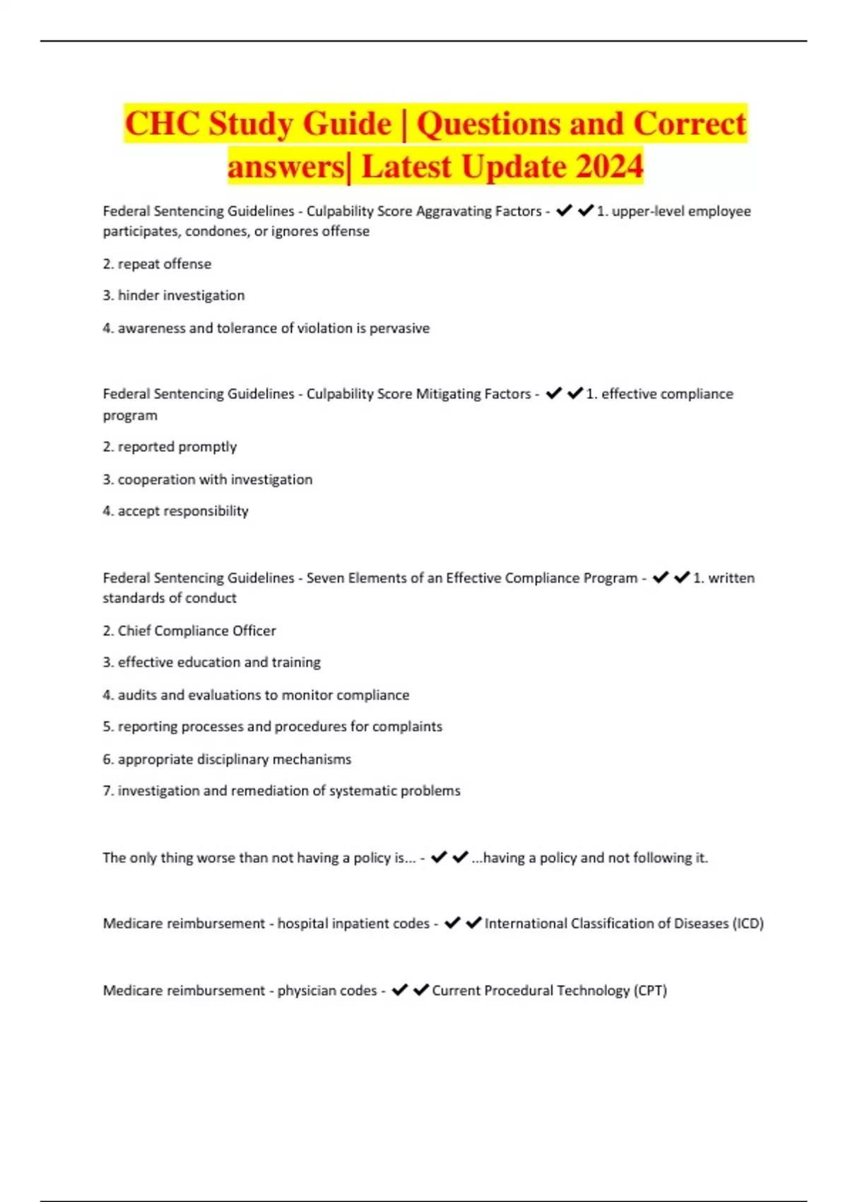 CHC Study Guide Questions and Correct answers| Latest Update 2024