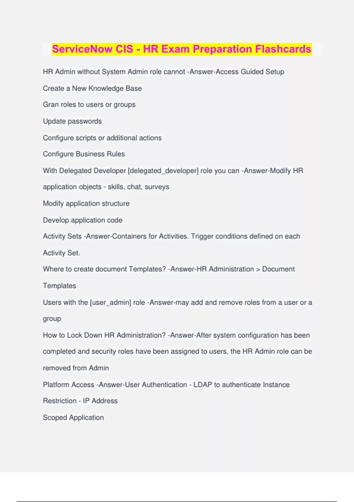 ServiceNow CIS - HR Exam Preparation Flashcards 2024