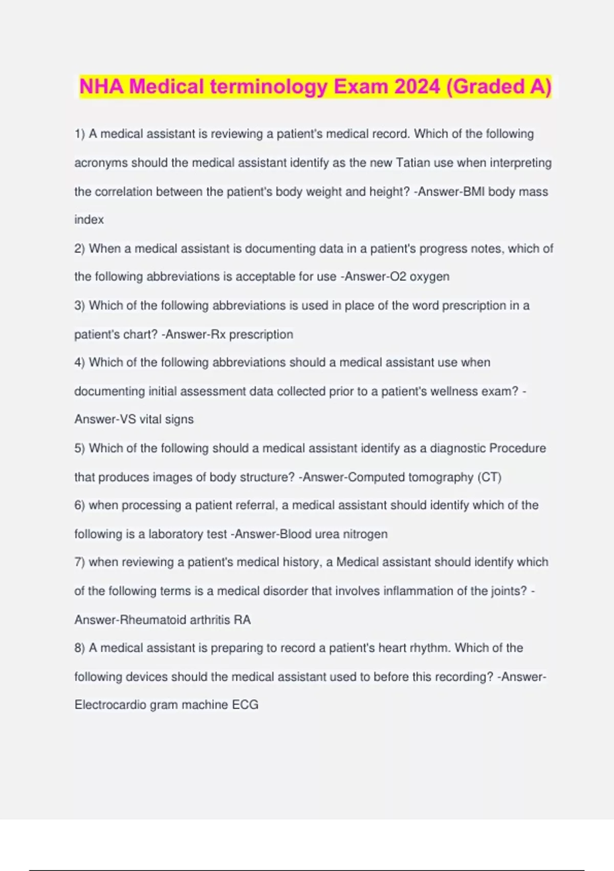 NHA MEDICAL ASSISTANT /MEDICAL TERMINOLOGY