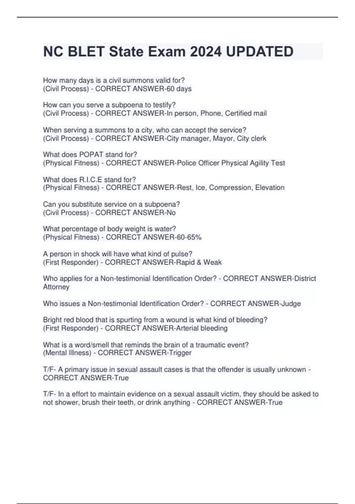 Nc Blet State Actual Exam 2024 With Verified Answers Nc Blet State Exam Law Enforcement Communication Unit 2024 Nc Blet State Exam (Questions And Answers) 2023 Nc Blet 2024: Final Exam Review With Correct Answers Nc Blet State Exam 2023/2024 (Questions And Answers Nc Blet State Study Guide Actual Exam 2024 Nc Blet 2024 State Exam Study Guide