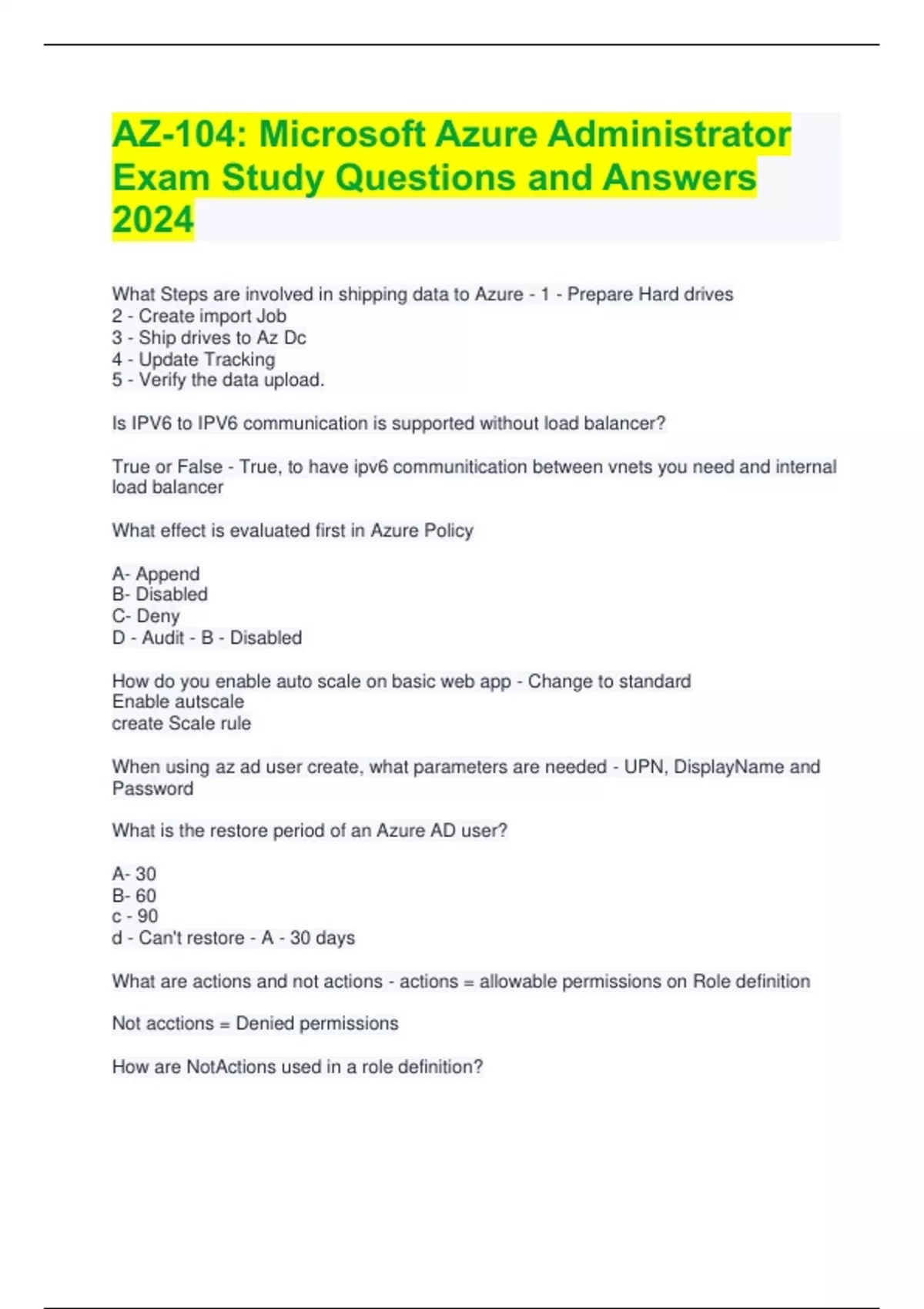 Package Deal For AZ 104 Exam Study Questions and Answers with Complete Verified Solutions 2024 Top Graded Package Deal For AZ 104 Exam Study Questions and Answers with Complete Verified Solutions 2024 Top Graded