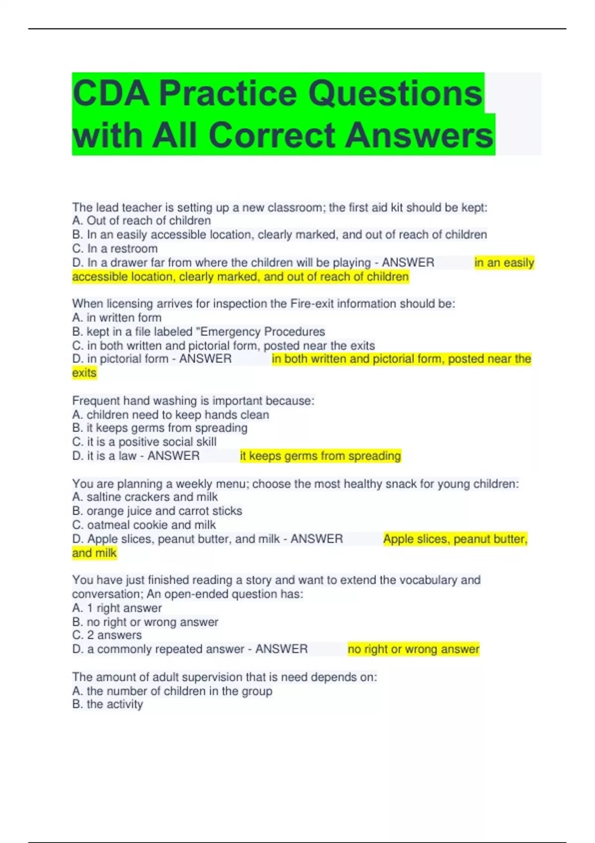 1 Exam (elaborations) CDA Terms with Complete Solutions 2 Exam (elaborations) CDA Exam Questions with Correct Answers 3 Exam (elaborations) CDA Test Questions with Complete Solutions 4 Exam (elaborations) CDA 2023 Exam Questions with Correct Answers A+ Grand 5 Exam (elaborations) CDA Exam Questions and Answers All Correct