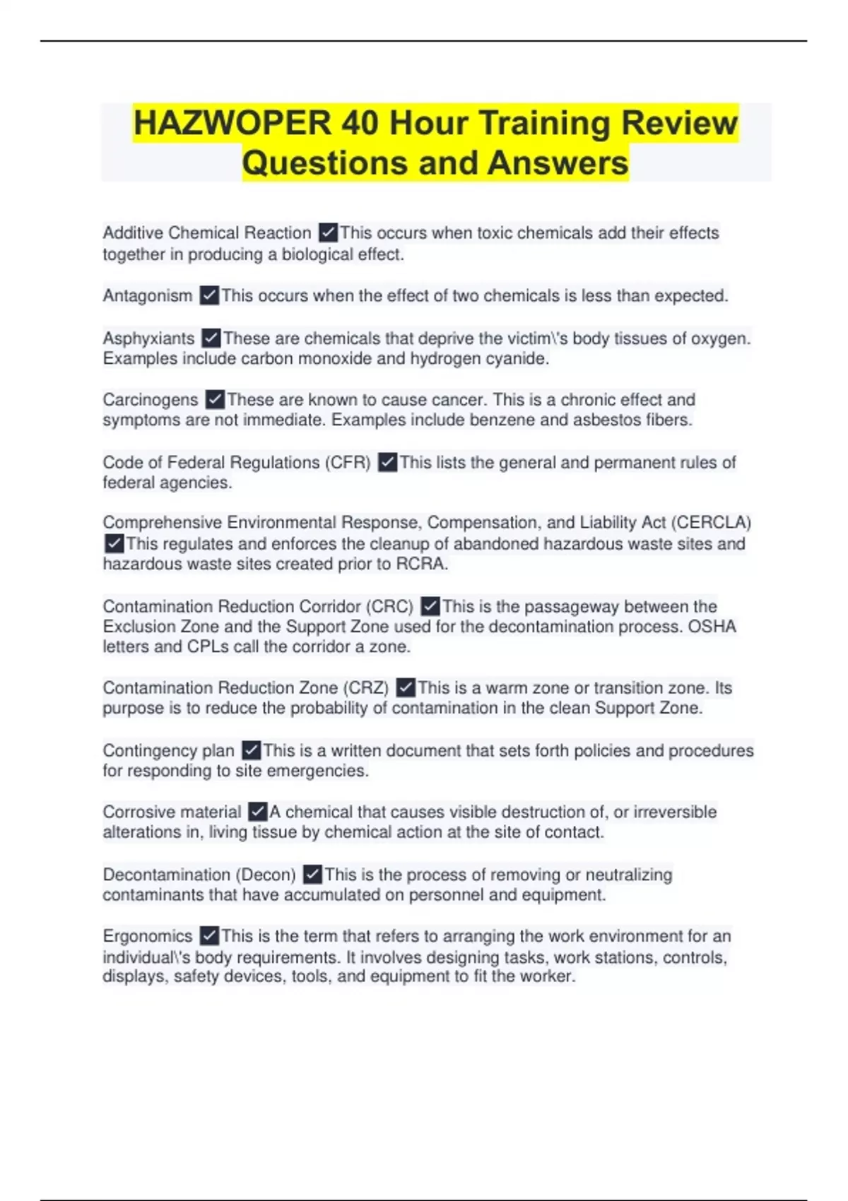 Mastering Hazardous Waste Operations and Emergency Response ( HAZWOPER)with Expert Q&A Package