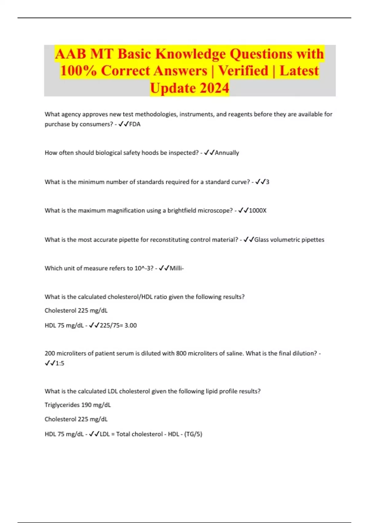 AAB MT Basic Knowledge Questions with 100% Correct Answers | Verified | Latest Update 2024