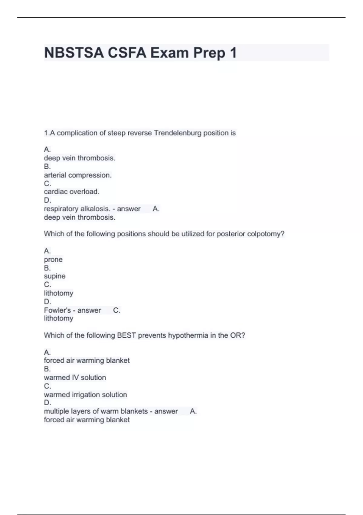 NBSTSA CSFA Exam Prep 1 Questions and Answers 2024