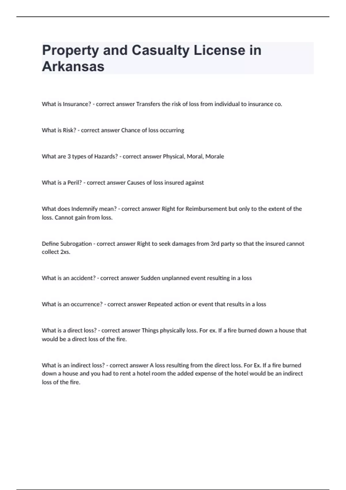 package deal for Arkansas property and casualty insurance exam verified to pass 2024