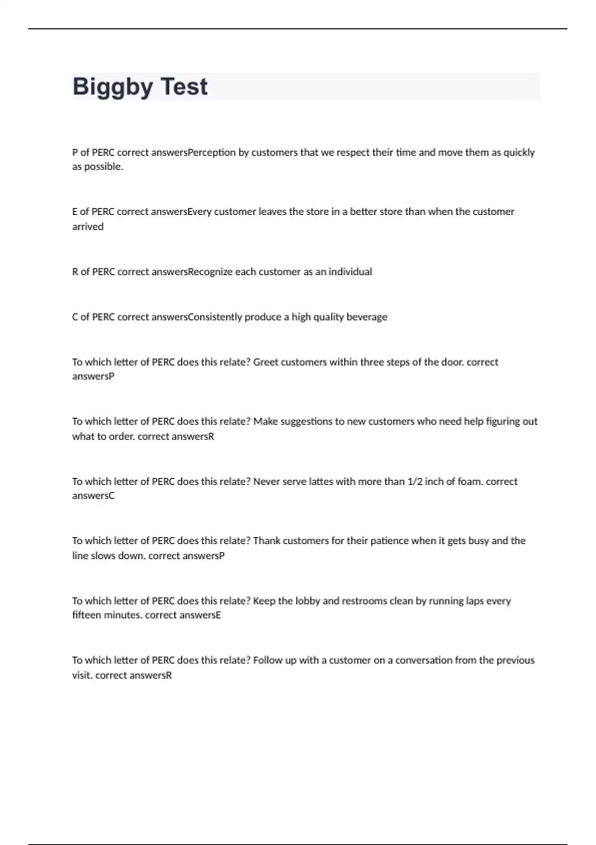 Biggby Coffee Training exam 2024 with 100% complete solutions BIGGBY COFFEE EXAM 2024 WITH 100% CORRECT ANSWERS