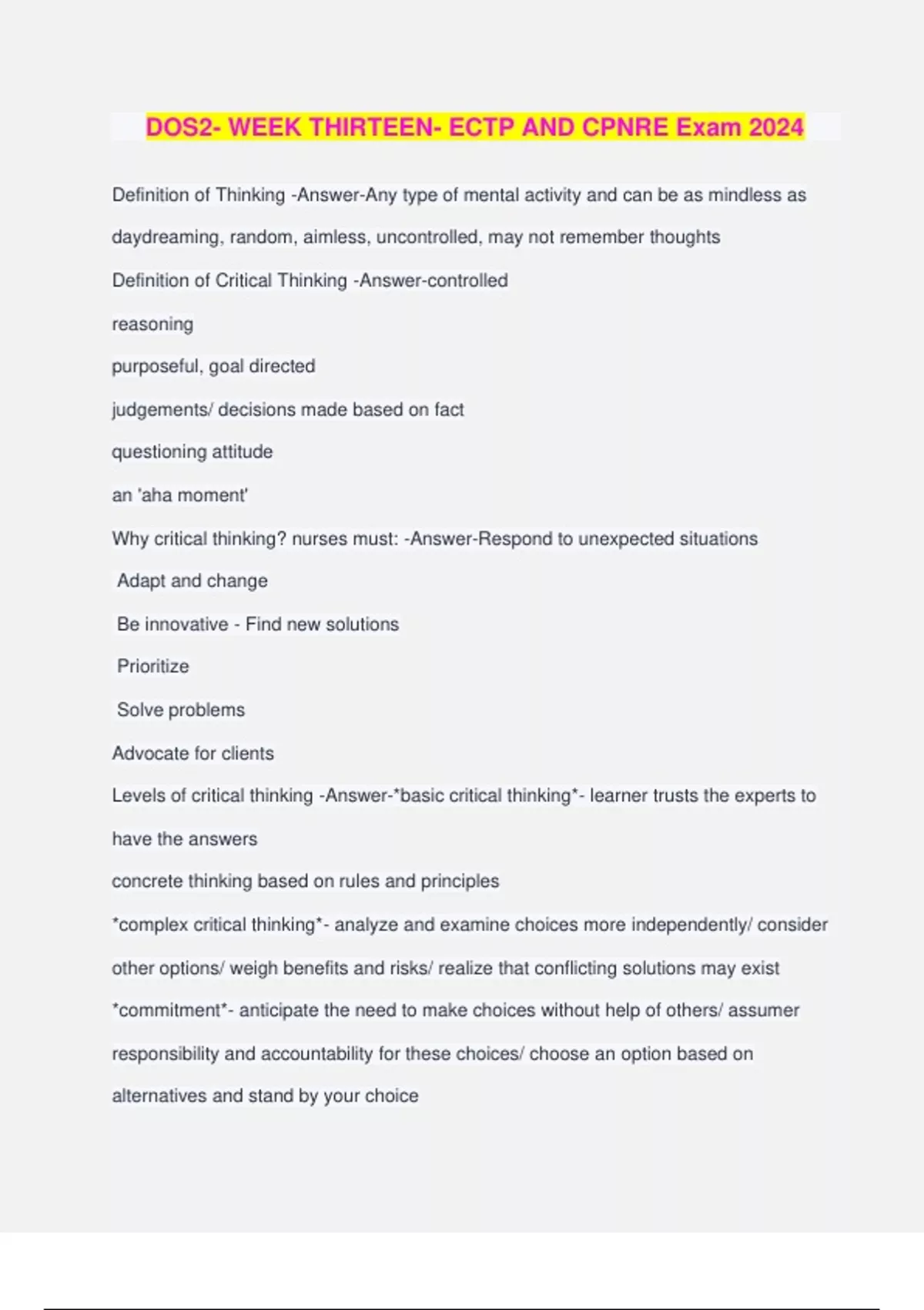DOS2- WEEK THIRTEEN- ECTP AND CPNRE Exam 2024