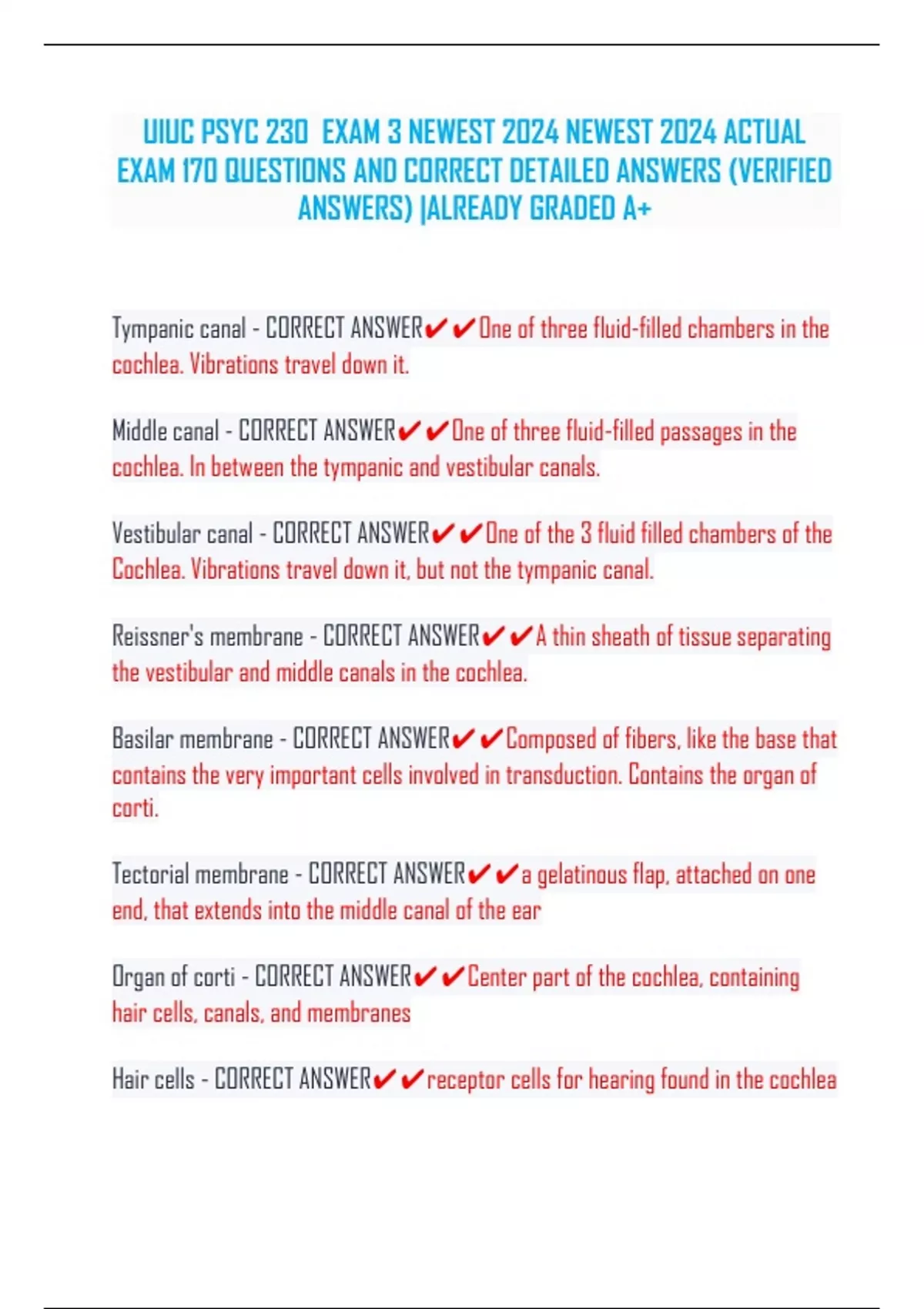 PSYC 230 UIUC FINAL 2024 NEWEST ACTUAL EXAM 150 QUESTIONS AND CORRECT DETAILED ANSWERS (VERIFIED ANSWERS) |ALREADY GRADED A+ 2 Exam (elaborations) PSYC 230 UIUC EXAM 1 NEWEST VERSION|120+ QUESTIONS AND ANSWERS 100% CORRECT 3 Exam (elaborations) PSYC 230 UIUC EXAM 3 |2024 NEWEST 2024 ACTUAL EXAM 170 QUESTIONS AND CORRECT DETAILED ANSWERS (VERIFIED
